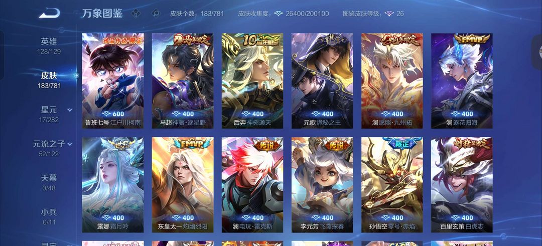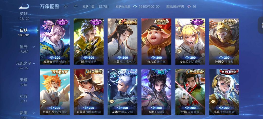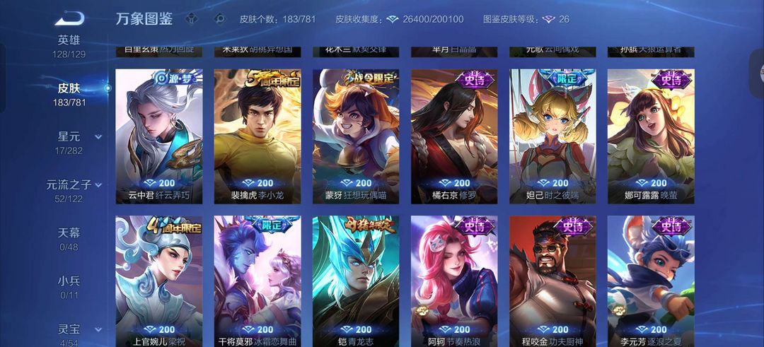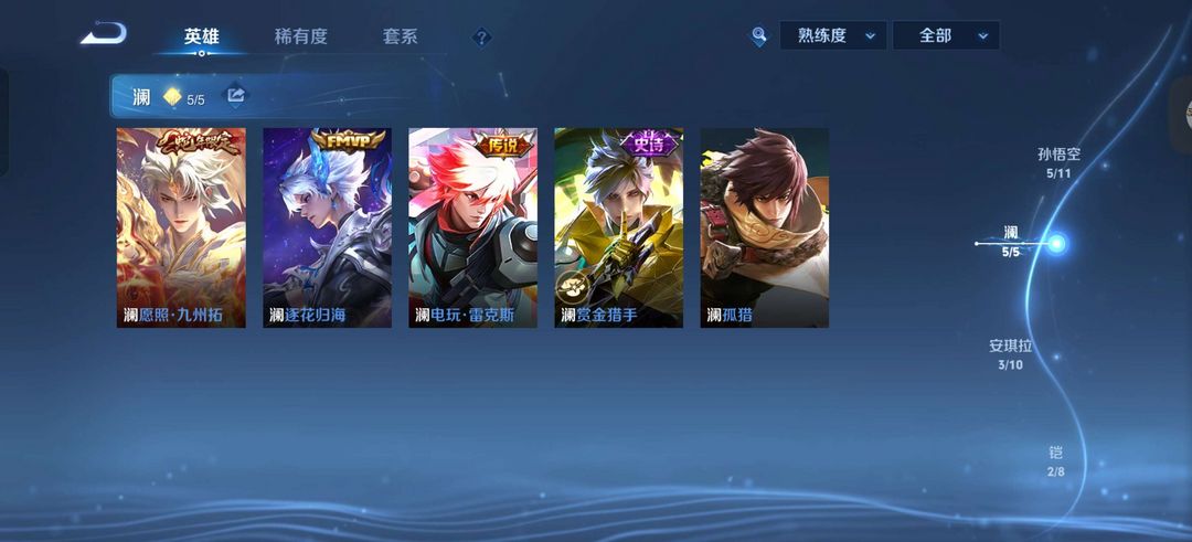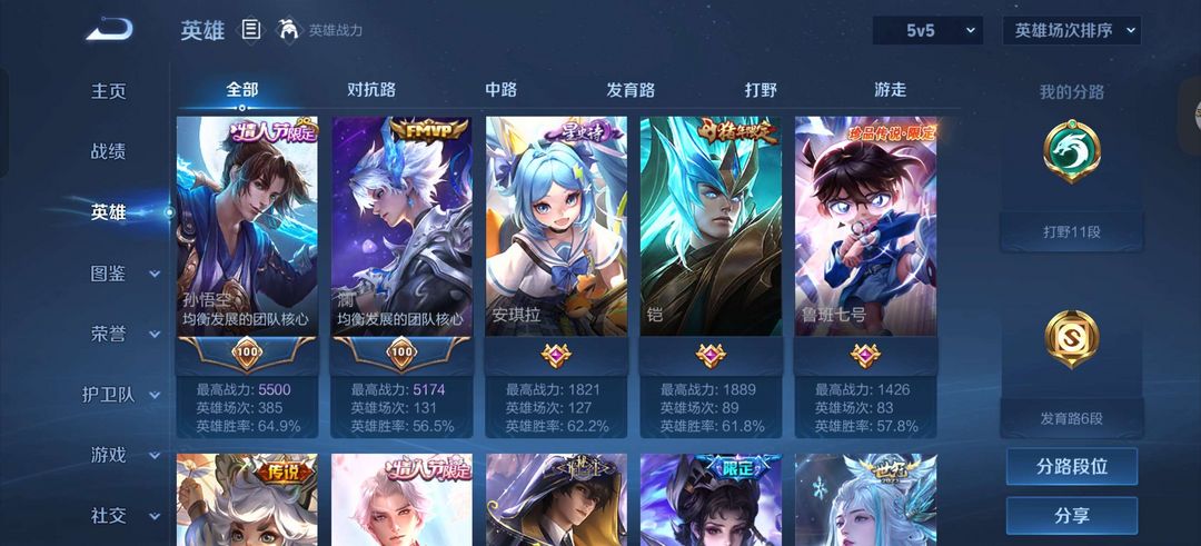 先看简介再租用!!要玩就玩不玩别搞我号全英雄有熟练度都能玩 有限定皮肤白虎志 青龙志 至尊宝