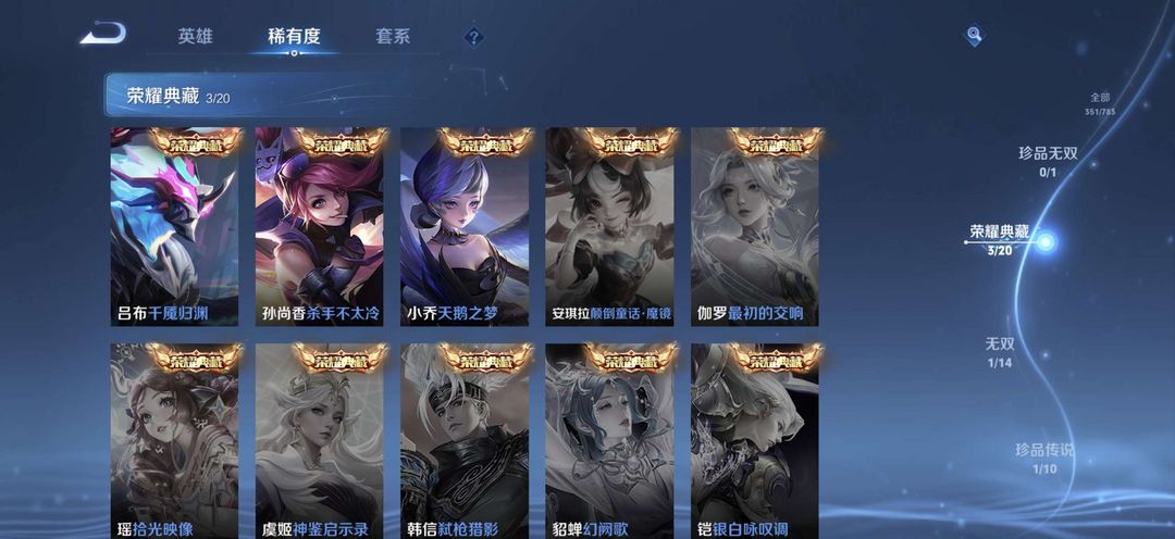 【V9•351皮肤】3典藏1无双30传说|351皮全英雄|可排位秒上号