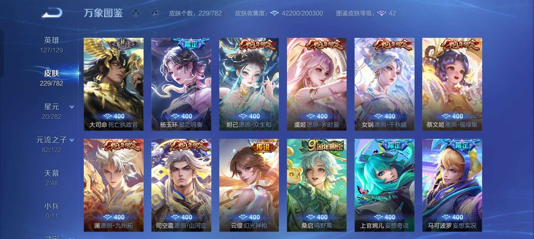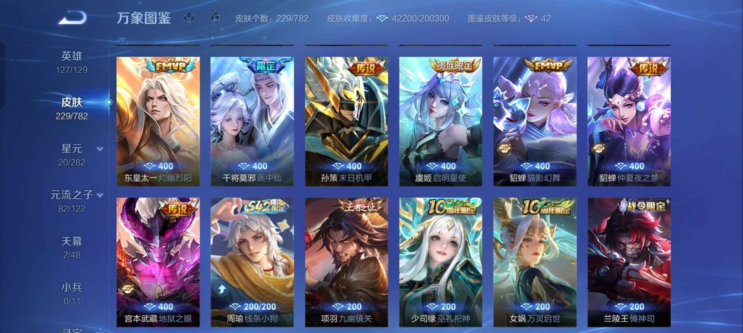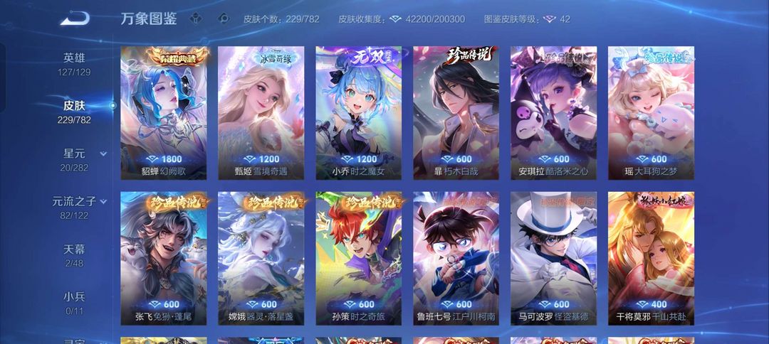 历史金标猴子 至尊宝 貂蝉典藏 蛇年全套 狐妖小红娘全套 小乔甄姬无双 珍品传说除了宫本和迦罗全有