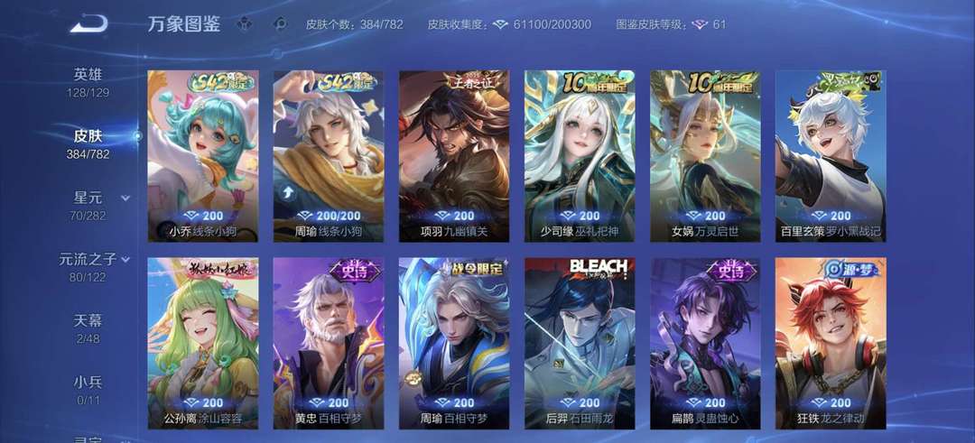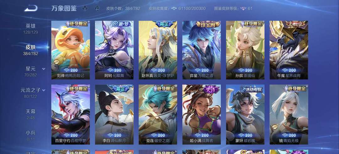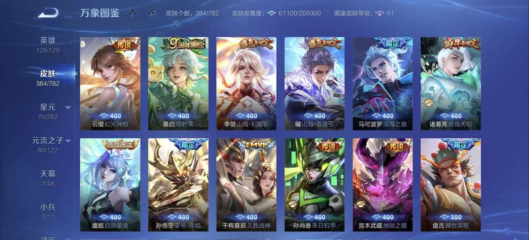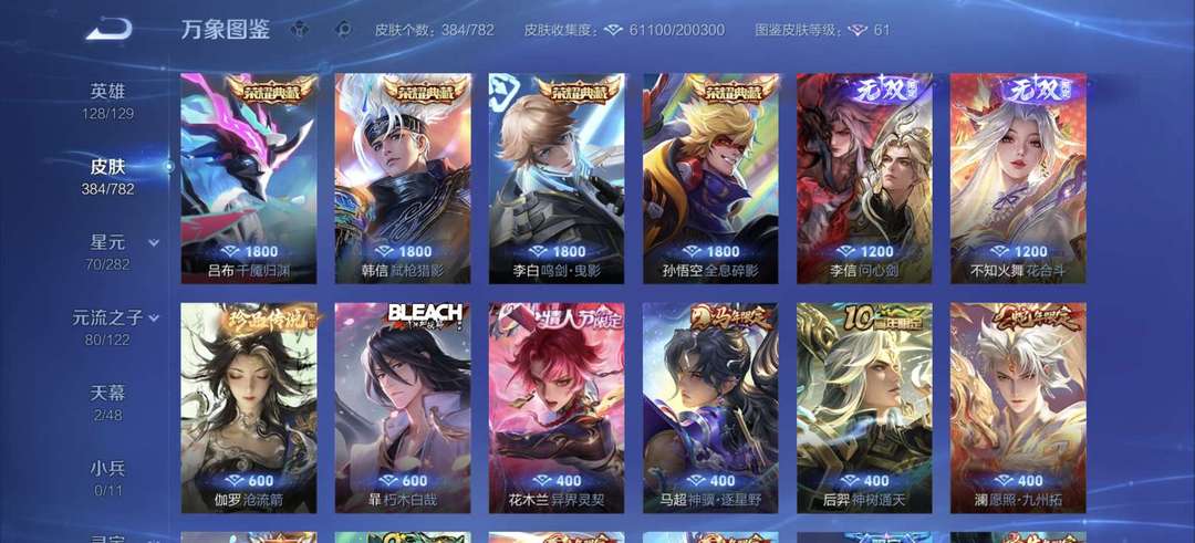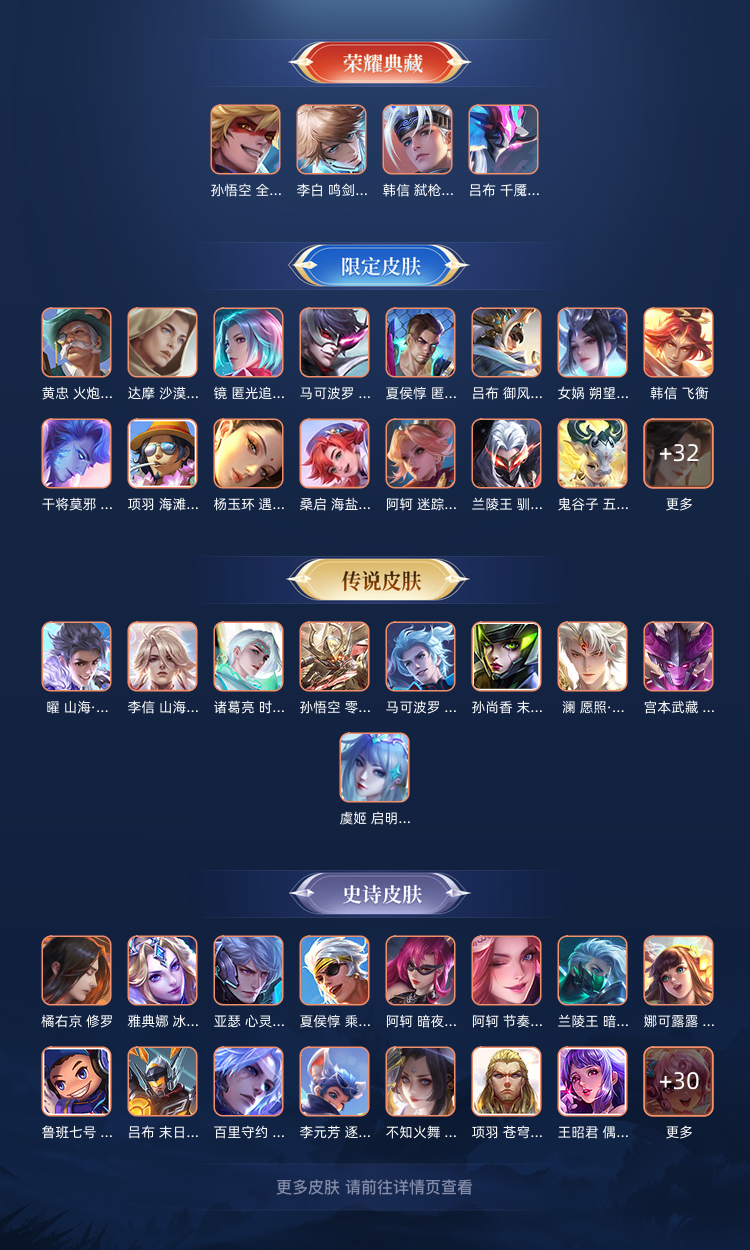 吕布典藏,韩信典藏,李白典藏,孙悟空典藏,李信无双,火舞无双,伽罗珍品,霏珍品,多种年线