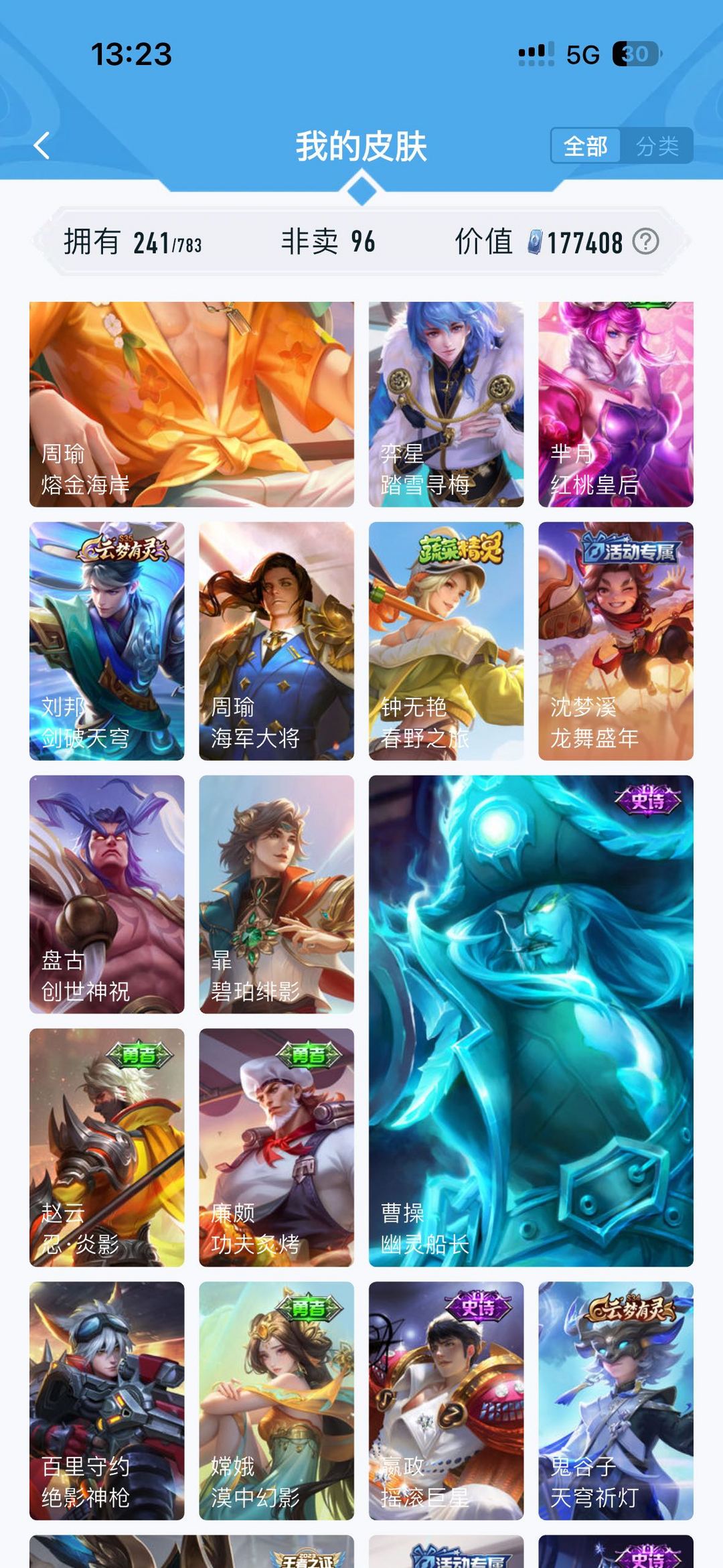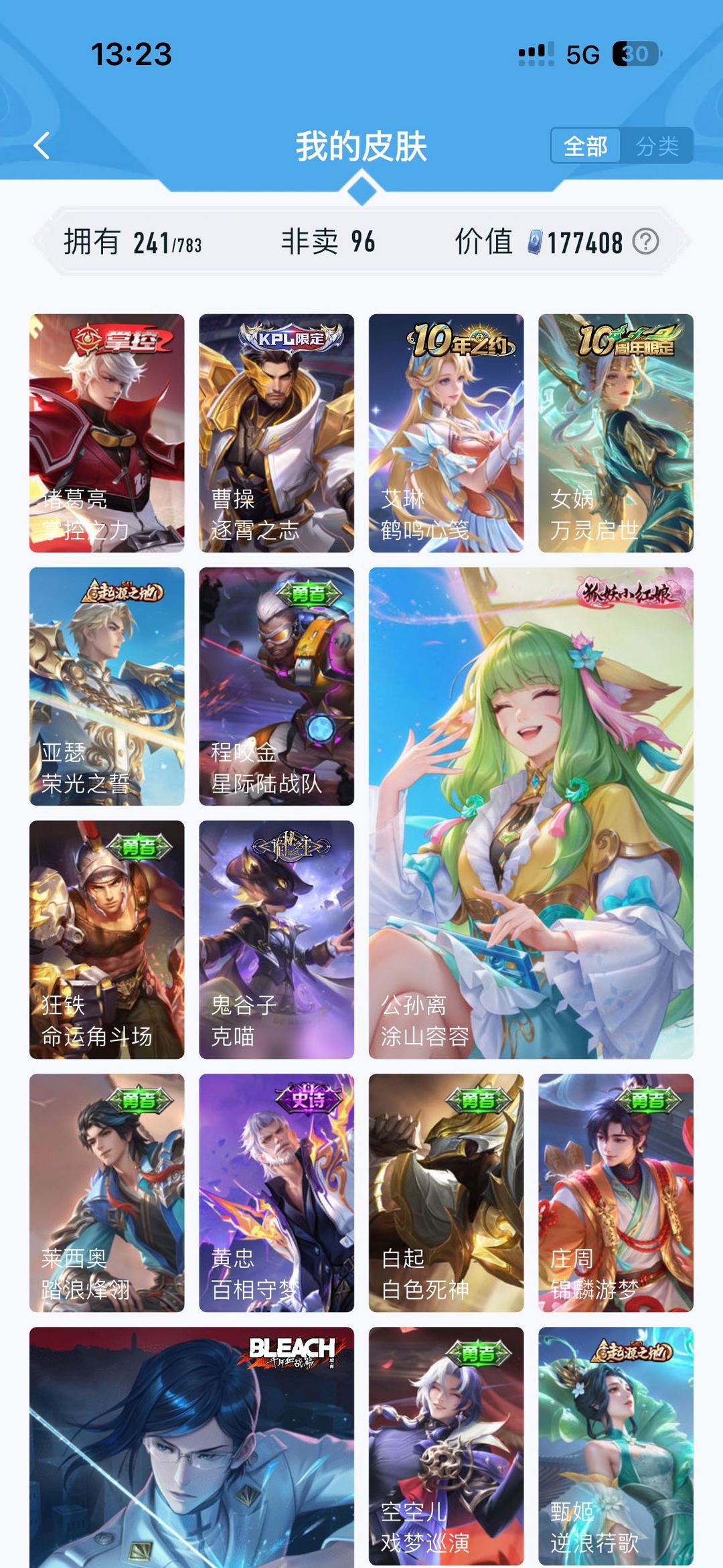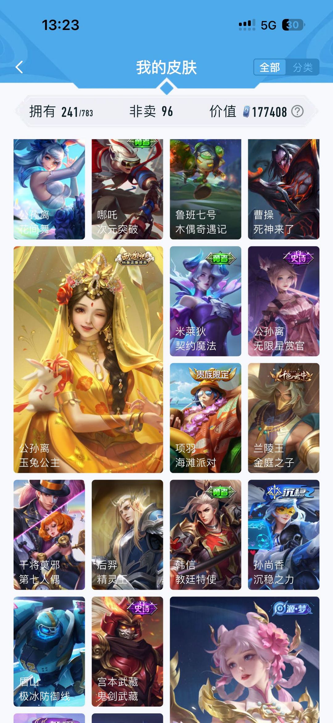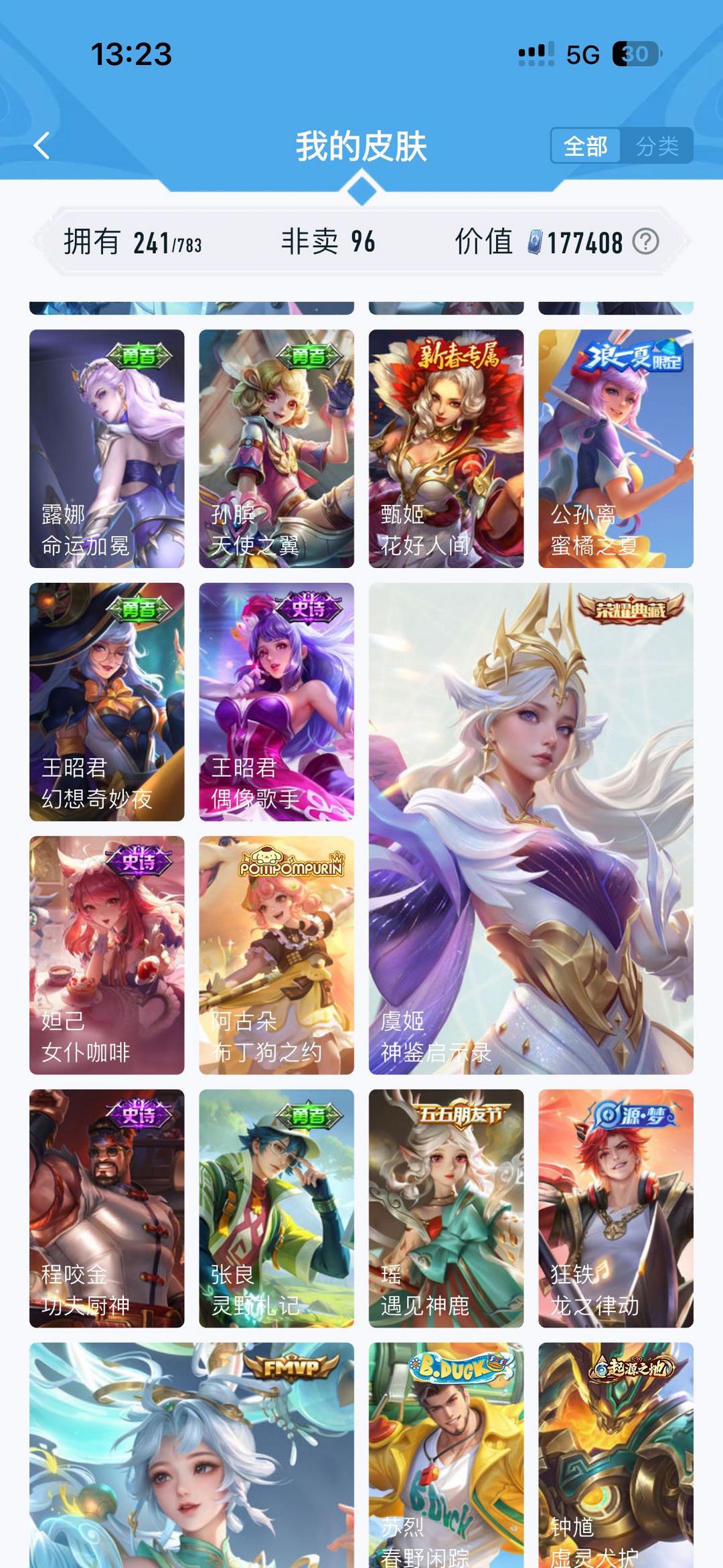 公孙离无双牛年限定 虞姬典藏 韩信飞衡 雅典娜神奇队长 玄策白虎志 马超fmvp 神威 干将fmvp