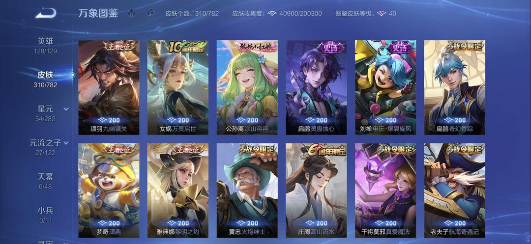 双荣耀典藏,夏侯惇跟孙尚香。韩信的KPI限定,猴子的情人节限定。后羿的狗年限定。