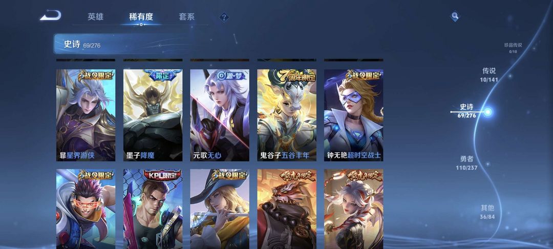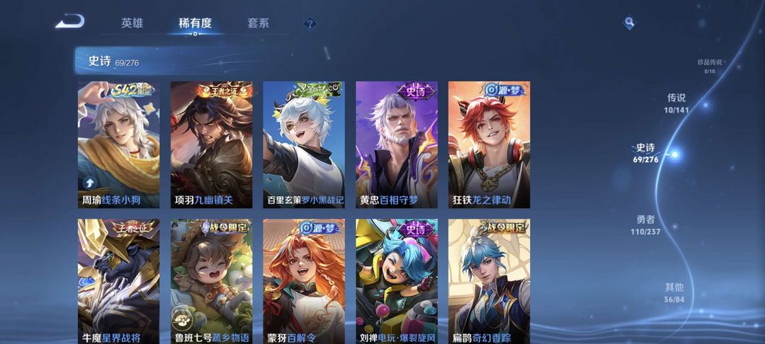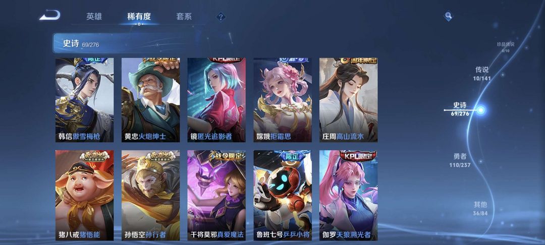 稀有皮肤 满铭文 星耀1 28发育路 英雄基本上都有 历史3个区标
