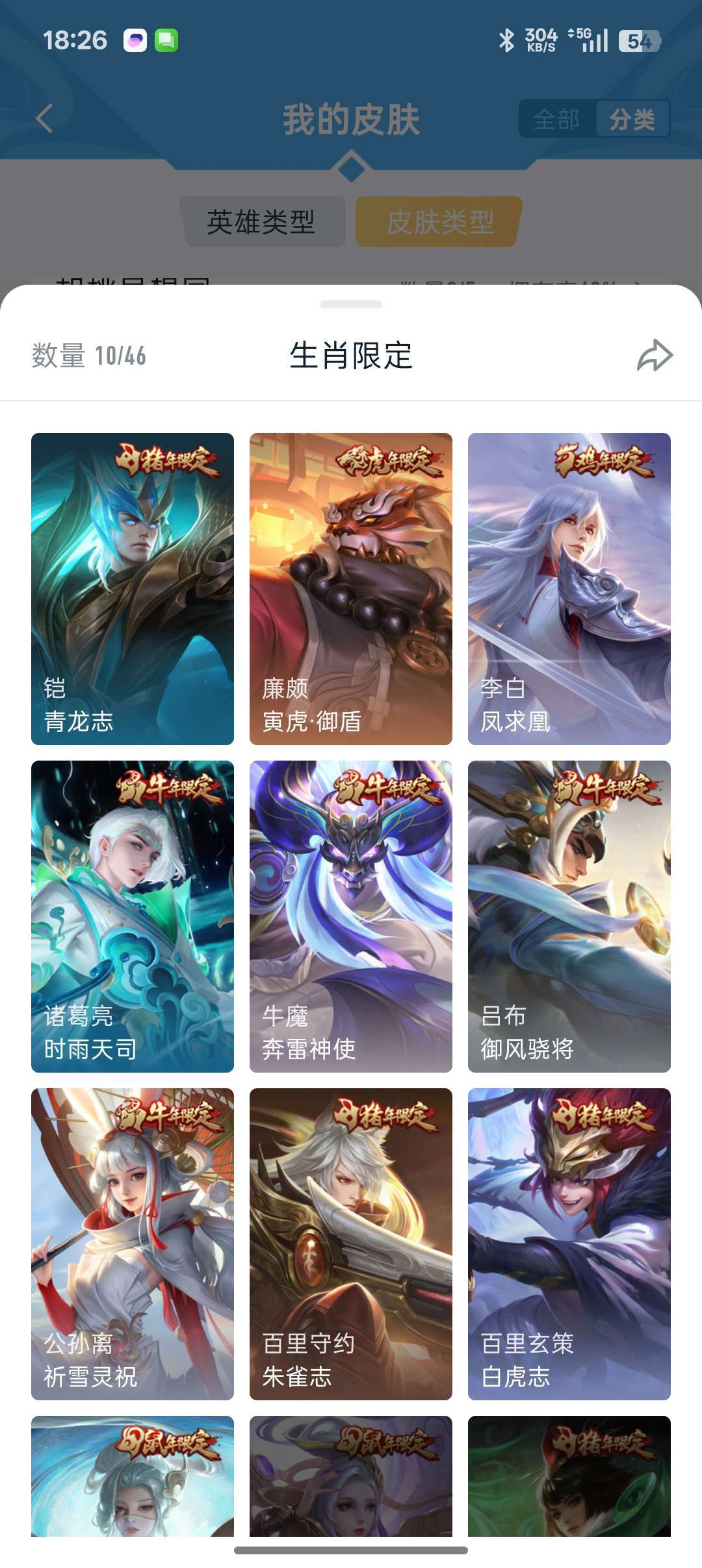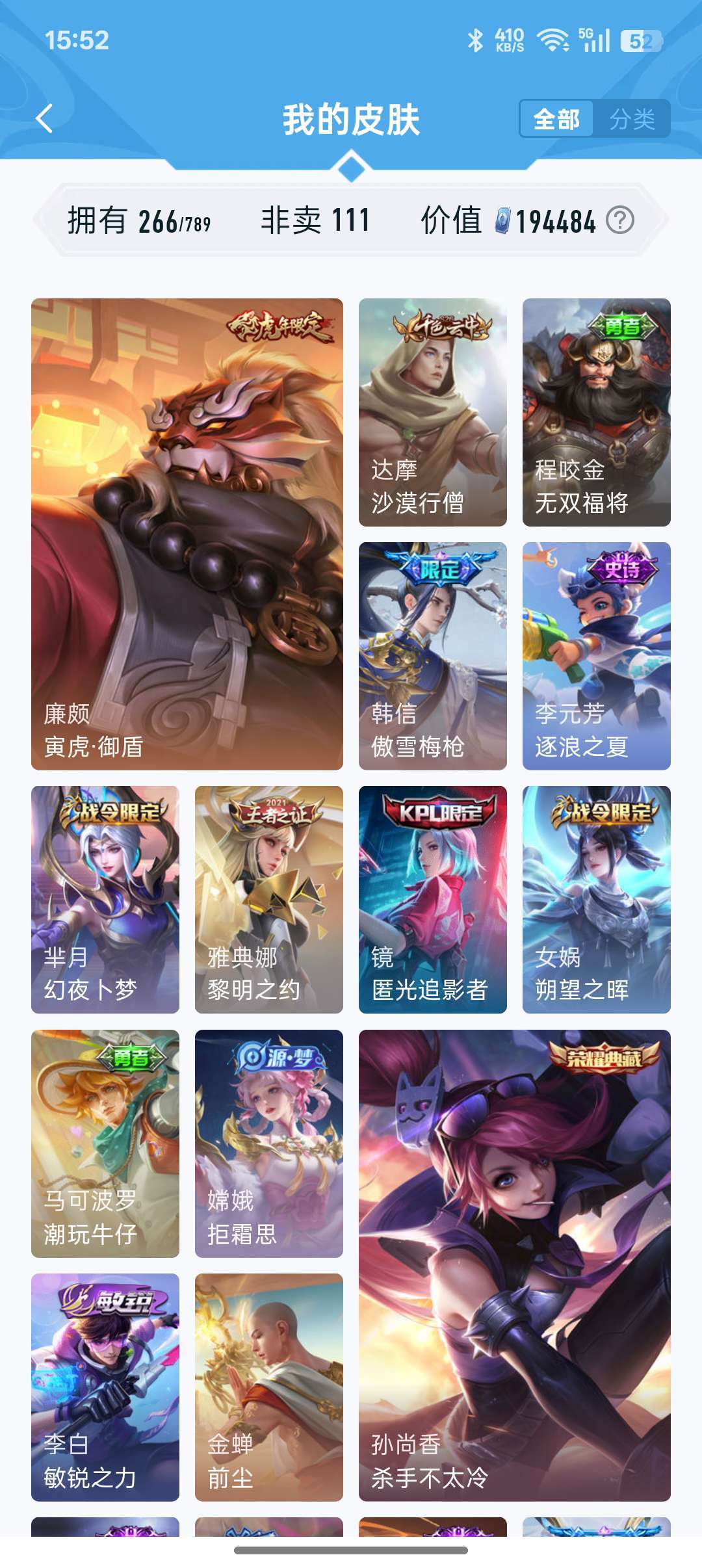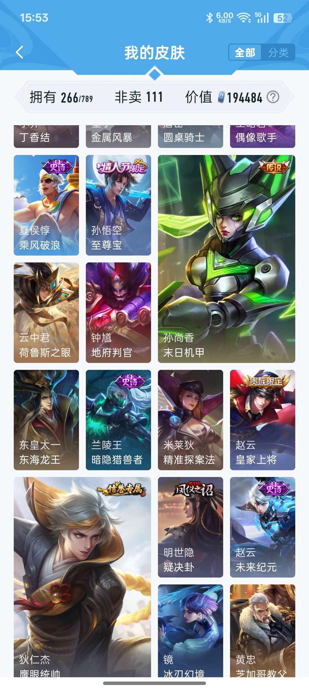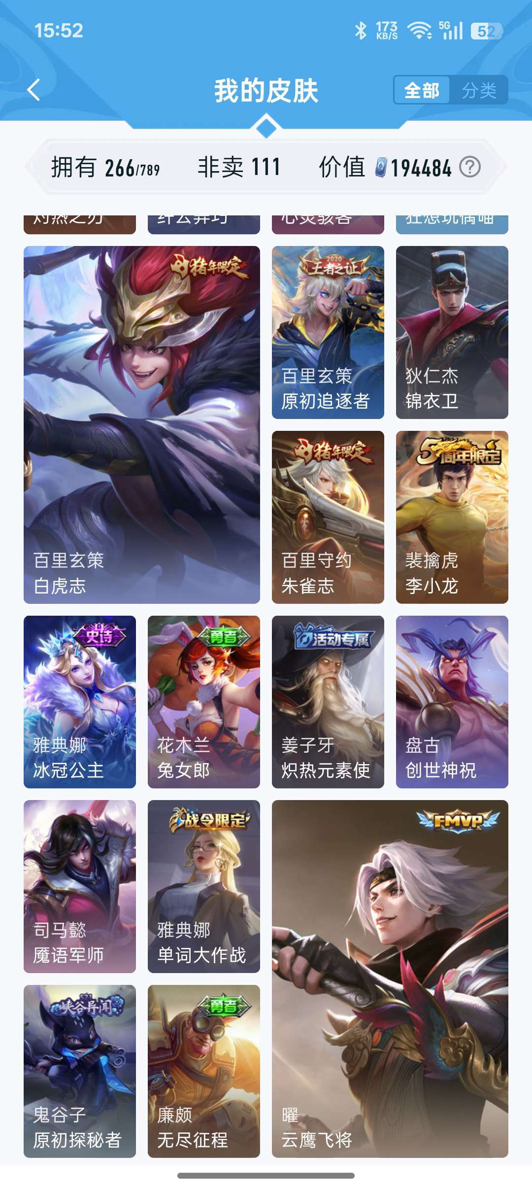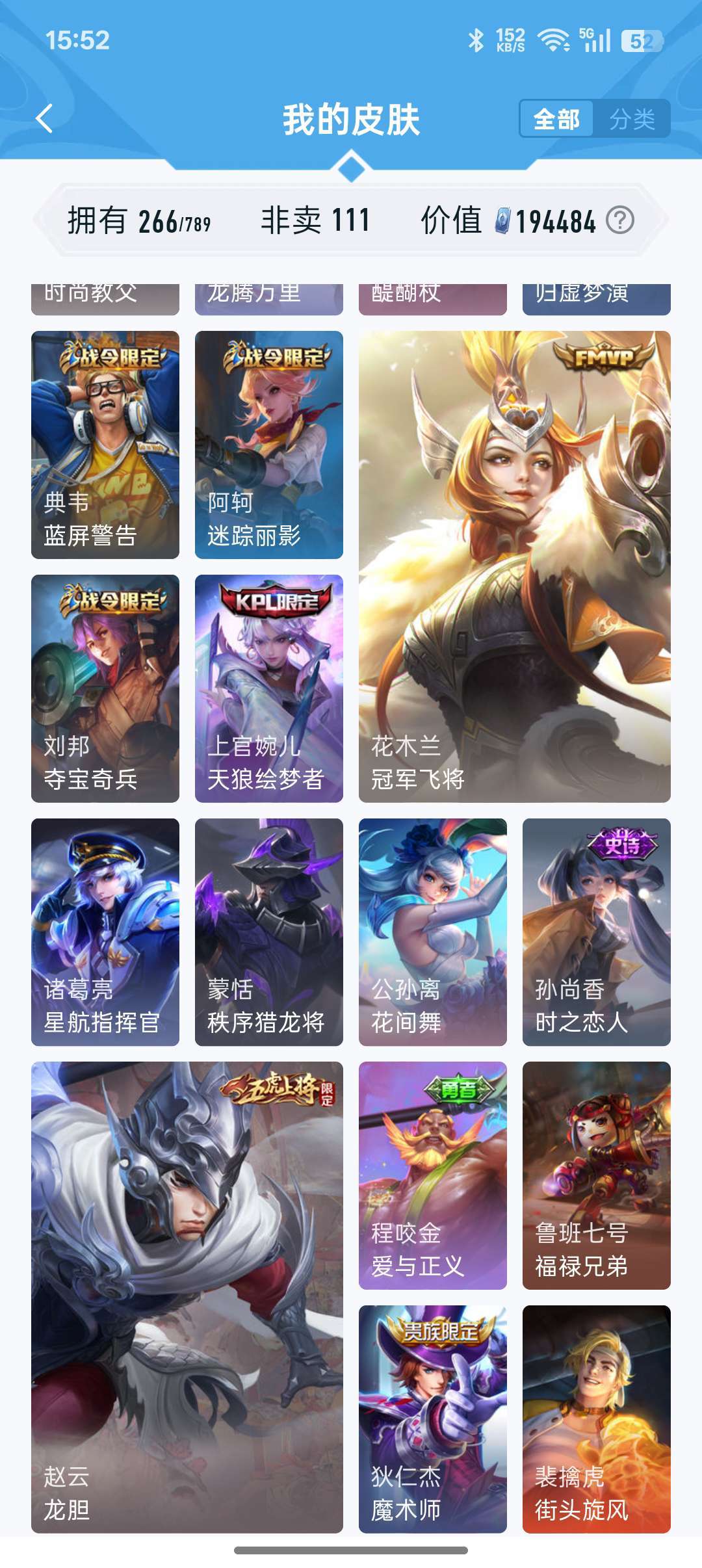 装备描述:牛年限定都有,凤求凰李白,孙尚香大部分皮肤都有,后来出的不玩了没买,战队赛太乙,等等200多皮肤,至尊宝,耀fmvp好多传说,白虎志,看图吧