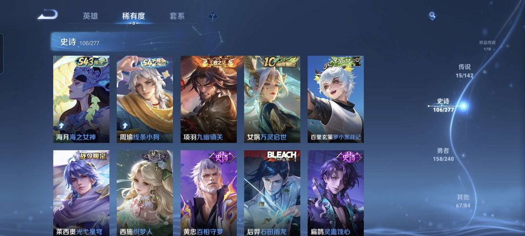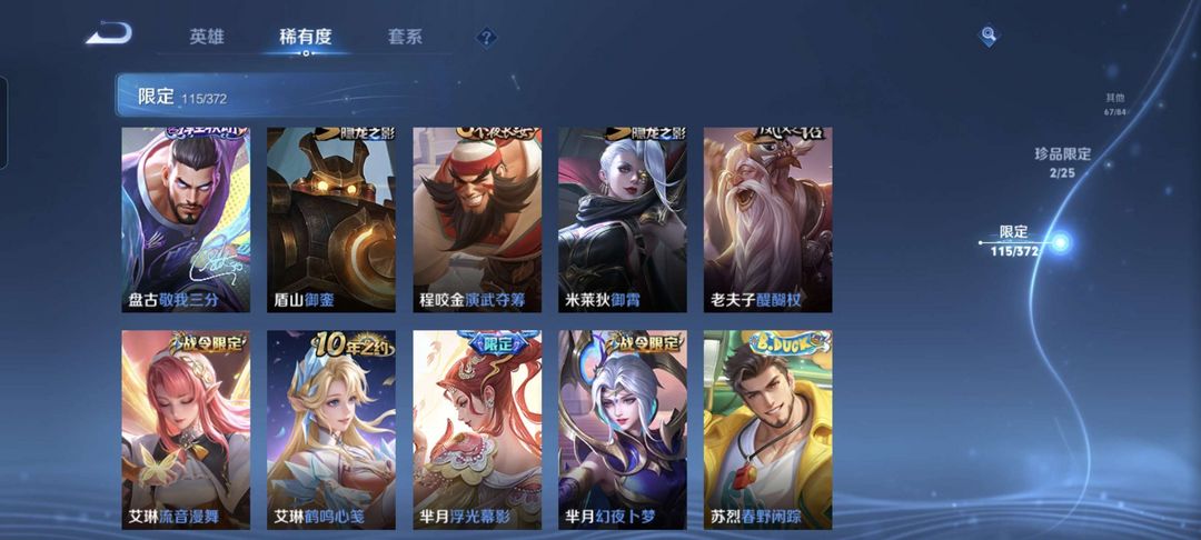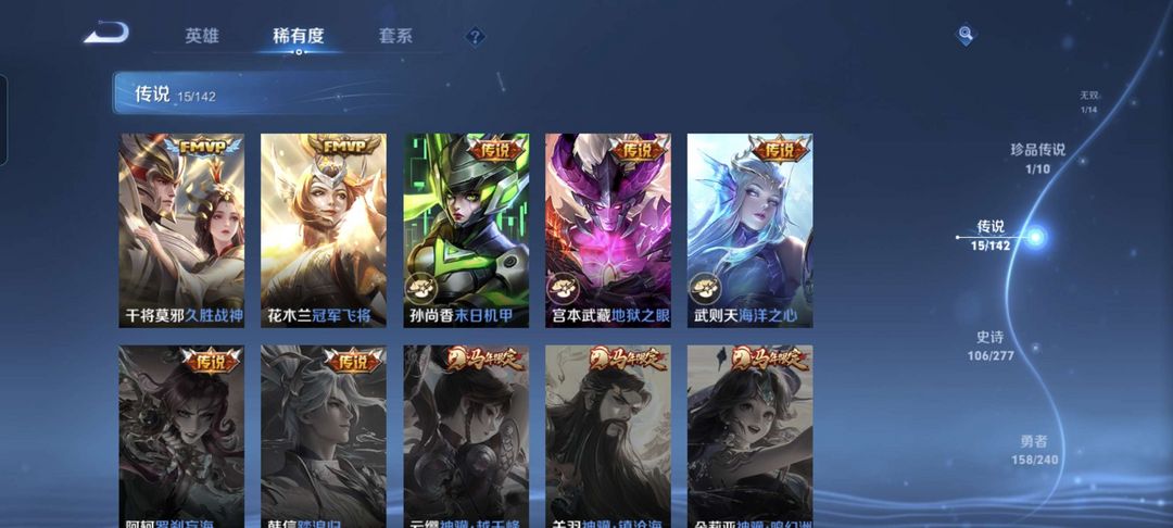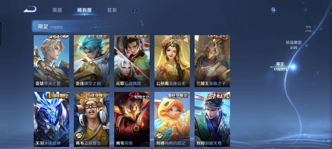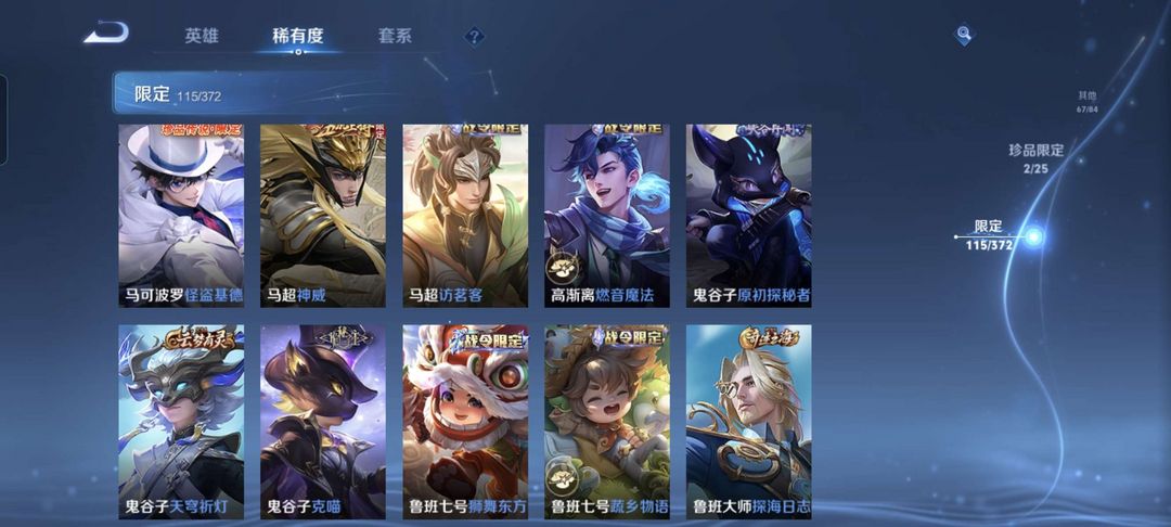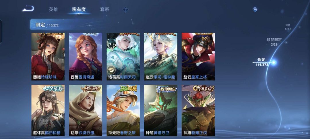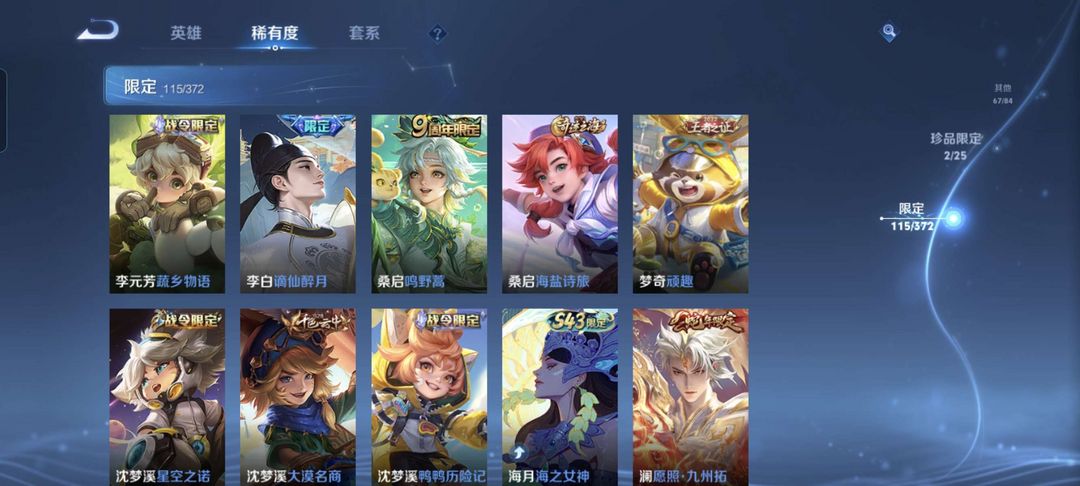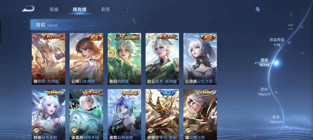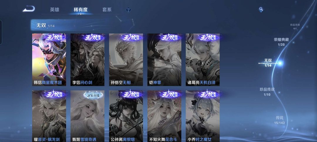 韩信除典藏都有,李白典藏,猴子至尊宝和机甲,公孙离传说皮等等