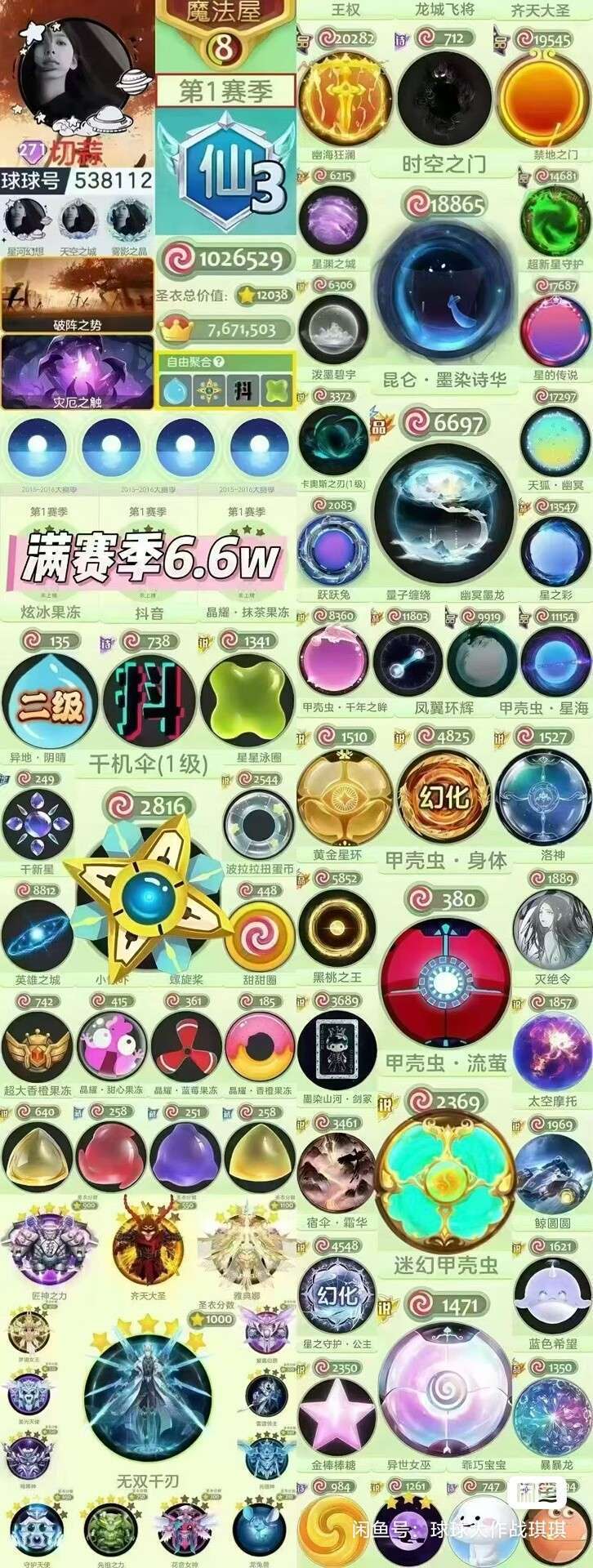 球球大作战满赛季6.6万名高配置静谧空间,时空之门,好几个甲壳虫二级水滴千机伞