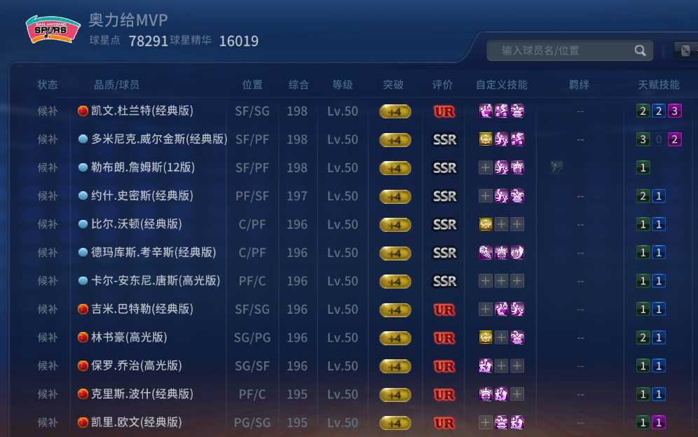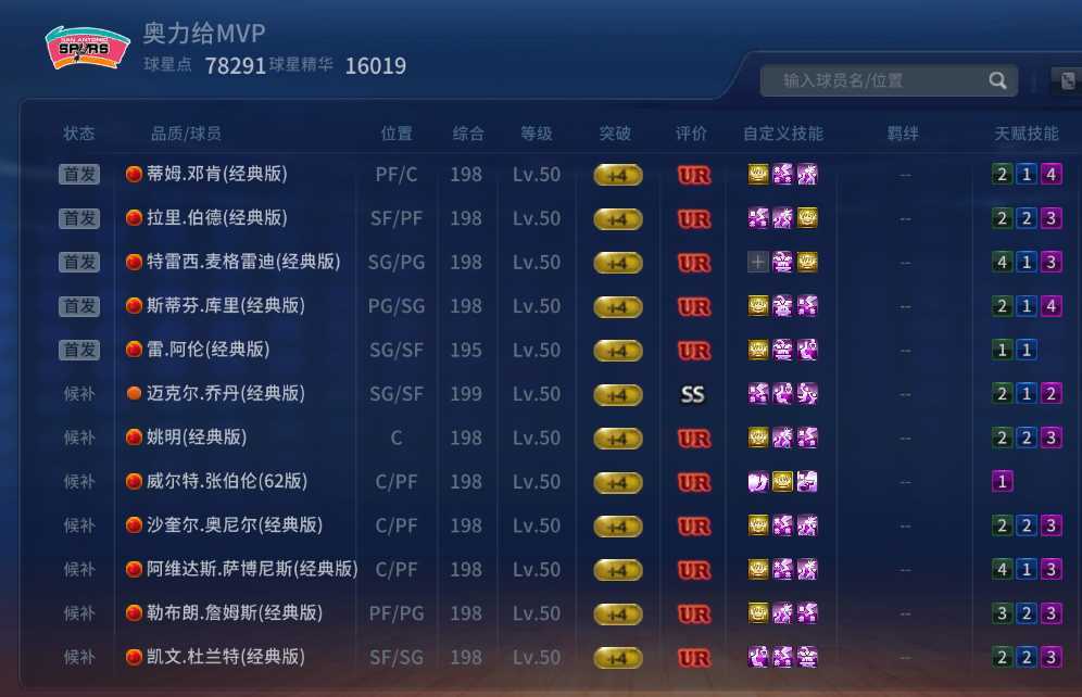 最新UR邓肯UR库里UR詹姆斯、姚明、伯德、杜兰特、奥尼尔、麦迪王朝阵容,三模式可玩。
