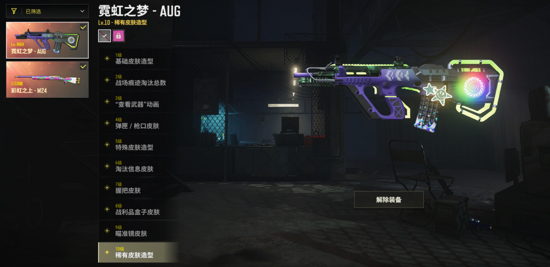 ⑩级霓虹AUG✅彩虹M24✅毒液M762✅拉风龙✅白战神白运动✅绿东绿烟