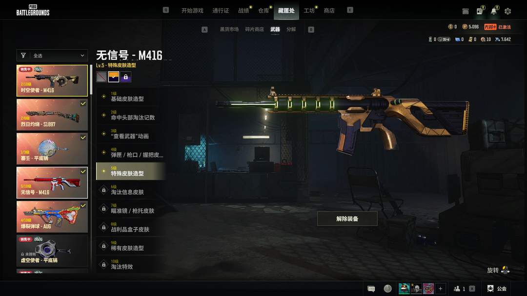 5级异色无信号M416√保时捷跑车√兰博基尼√4级爆裂AUG√黑鬼发光手臂丸子头√时空使者M416
