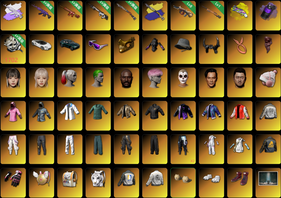 迈凯伦马丁✨满级白虎锅✨⑩异色美杜莎✨⑩M4✨⑩MK12✨⑩异色s1897✨8级AUG✨白运动绿东