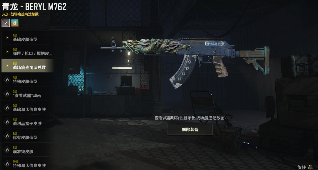 装备描述:二级密码507788/女团HAERIN套装【二成长型-3级青龙M762-权志龙AUG】青龙ACE/毒刺M762/青花mini14/雪国M416/等大量皮肤枪械皮肤