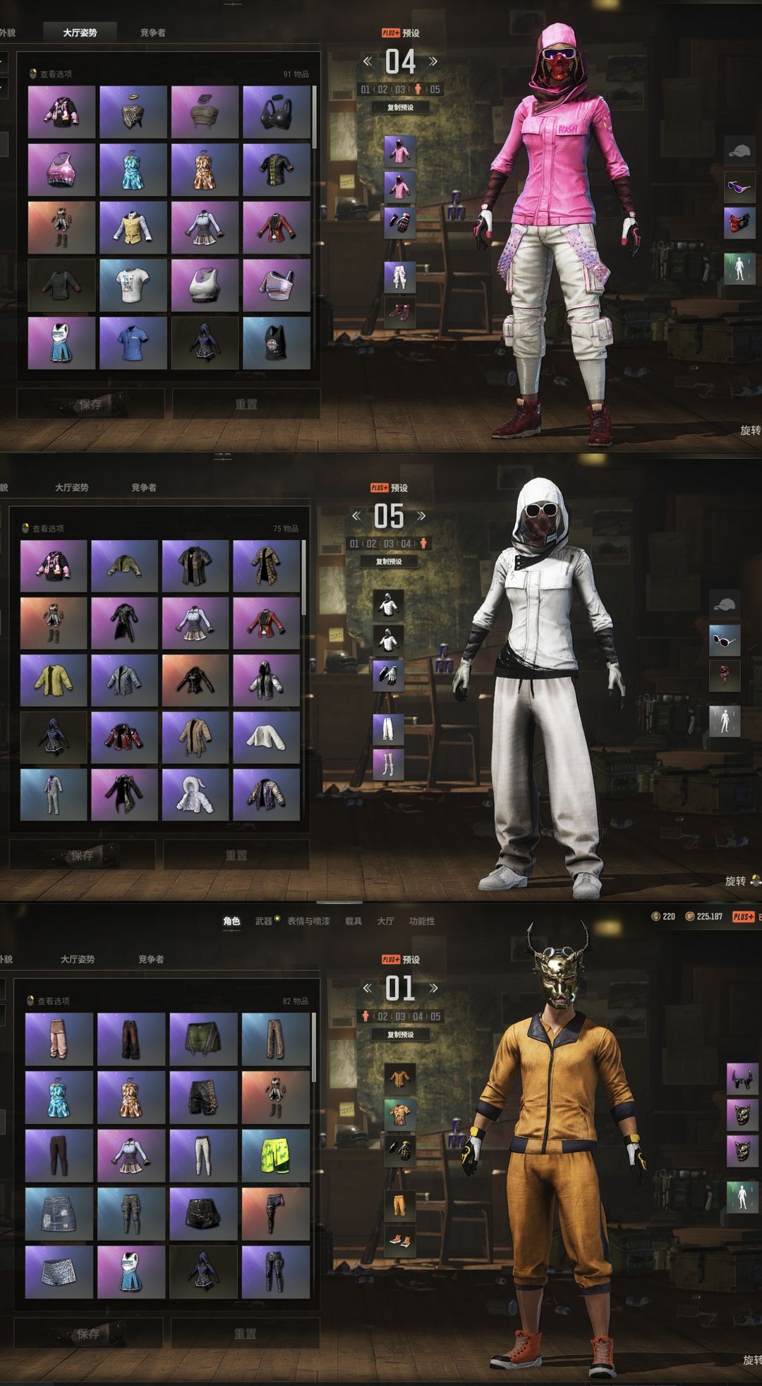 装备描述:【十一神器】保时捷卡宴/满级无信号M416/无重力MP5K/妖魔之触ACE32/烈日灼烧S1897/魔咒之力MK12/危险玩偶屋SLR/午夜惊魂98K/黑暗深渊M762/时光之农SKS/毒液M762/品红色烟雾/蓝色烟枪/逃亡SUV/悲喜套装/橙运动/字节意志套装/白战神/柏林鞋/滑雪镜/滑雪帽/牛角/拉风龙裤子/勇往直前渔夫帽/吹萨克斯舞蹈