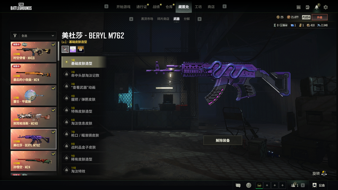 6神器√美杜莎M762√时空使者M416√塞壬平顶锅√孙悟空M24√刻尔柏诺斯M249√悲喜套柏林鞋