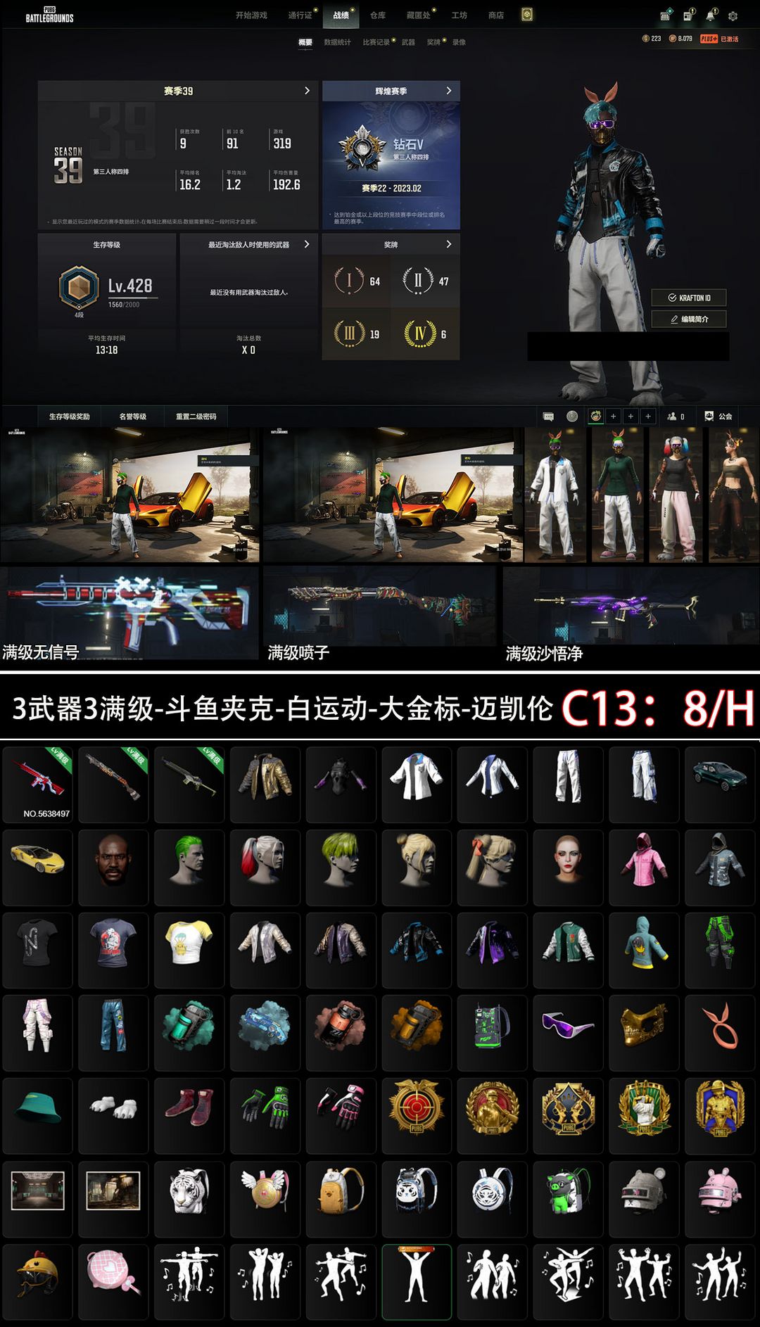 3器3满⭐无信号M416⑩喷子⑩沙悟净⑩阿斯顿马丁迈凯伦斗鱼夹克柏林可排位火麒麟美杜莎M762青龙