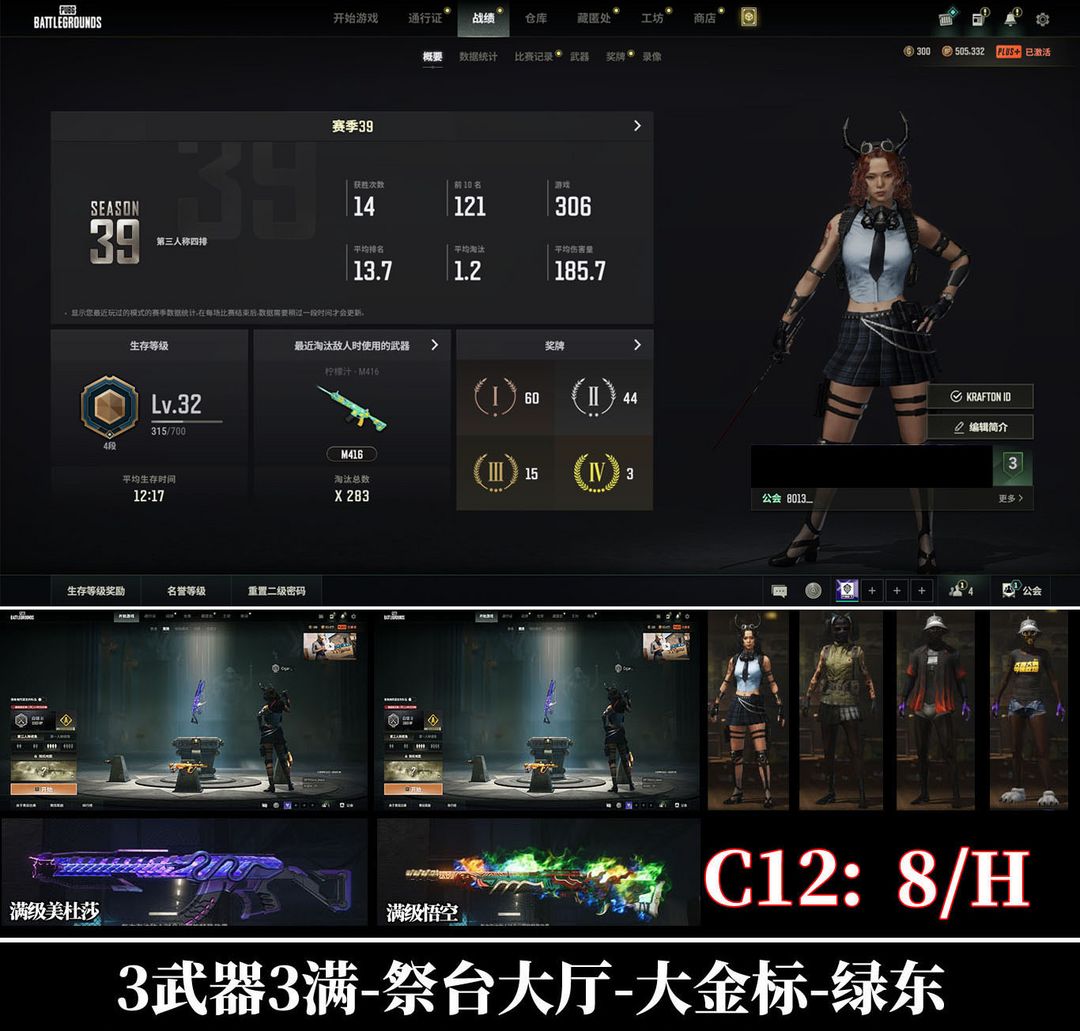 3神器3满⭐满级瀚娜美杜莎762⑩悟空M24⑩祭台大厅黑鬼大金标发光手臂柏林青龙762AUG可排位