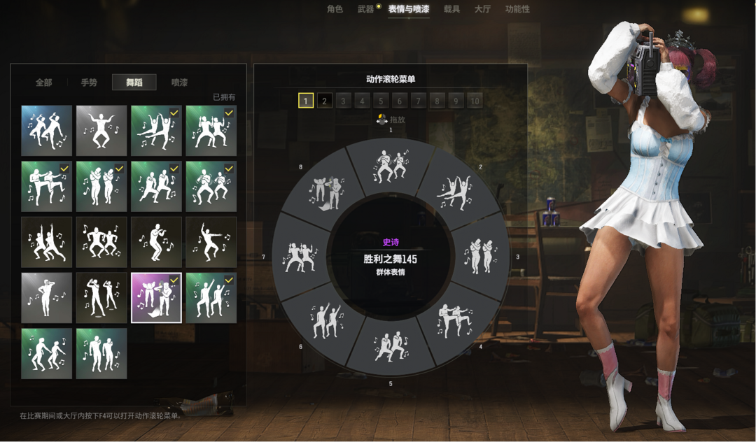 装备描述:【八神器】保时捷卡宴/六级恶魔猎手ACE32/四级无重力MP5K/三级无信号M416/二级赛危机MK12/午夜惊魂98K/弥诺陶洛斯AUG/时光加农SKS/妖魔之触ACE32/WINTER新女团/绿东/橙运动套装/白战神/抗箱子舞蹈