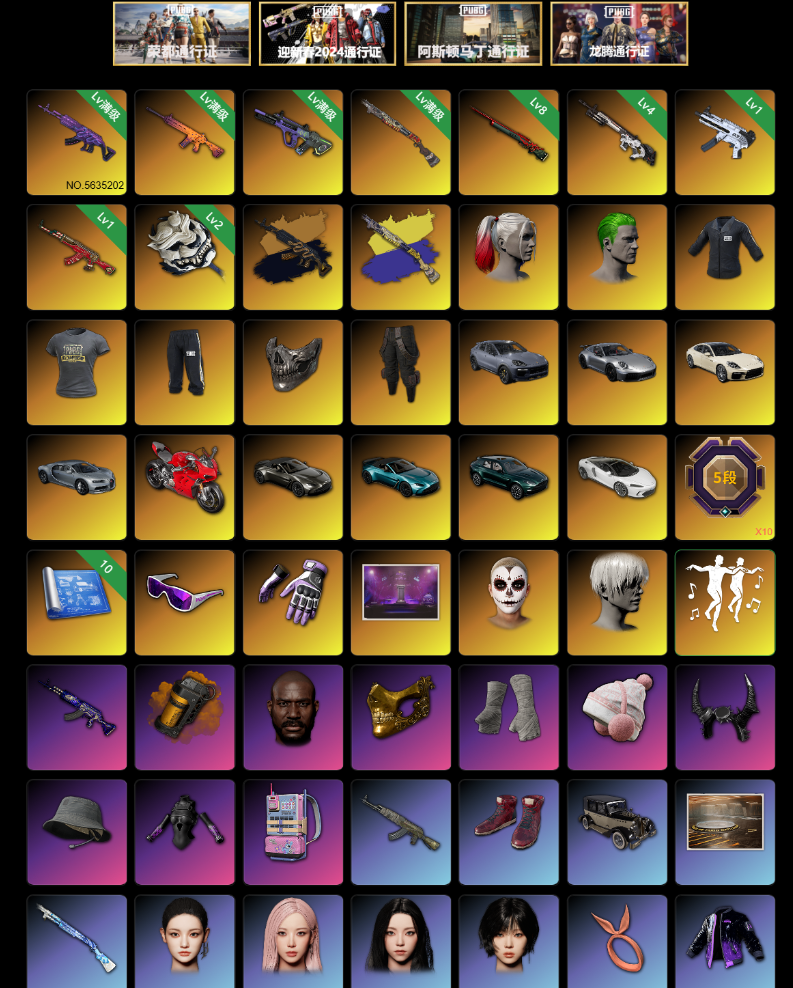 近5满极品黑东柏林套满级喷子+异色⑩美杜莎⑩显卡AUG⑧孙悟空多跑车