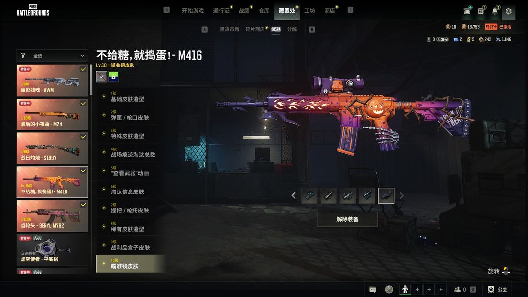 满级南瓜M4小丑女套装双保时捷车皮,满级异色1897,火麒麟M762异色AWM小夜曲M24