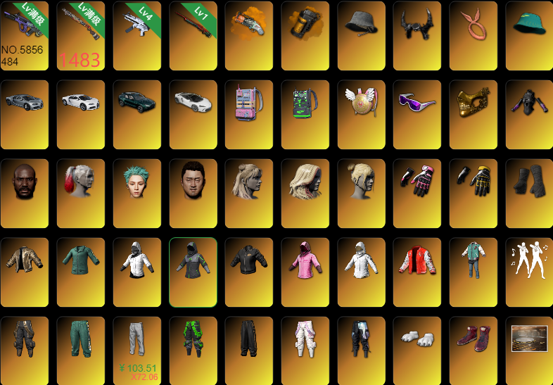 布加迪迈凯伦马丁超跑✅满级霓虹AUG✅满级1897✅4级MP5✅黑鬼丑女权志龙✅粉电背包发带牛角