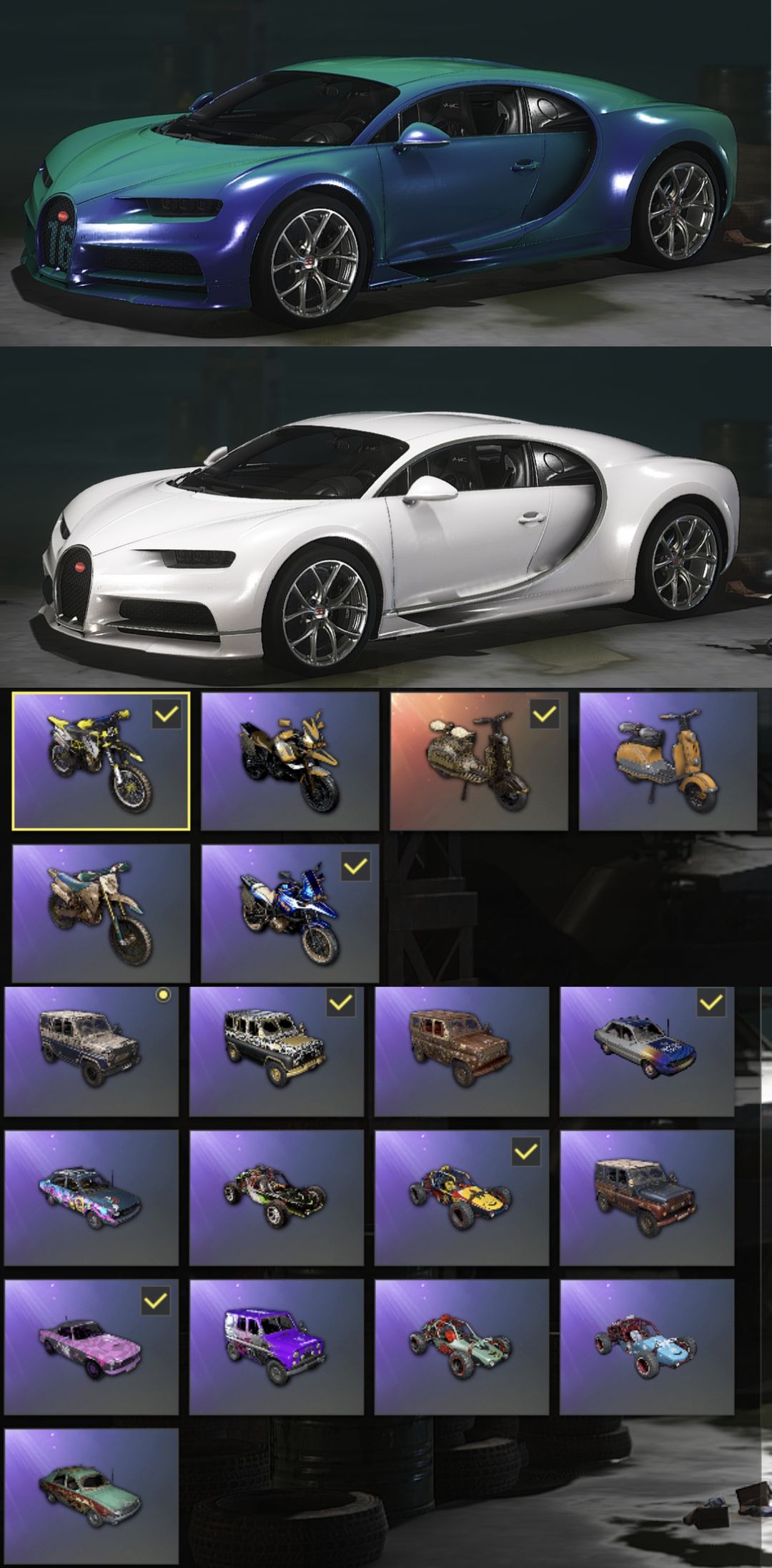 装备描述:【十一神器】双异色满级无信号M416/妖魔之触ACE32/无重力MP5K/魔咒之力MK12/危险玩偶屋SLR/猛虎猎手98K/蓝色烟枪/品红色烟雾弹/竞争者瀚娜/布加迪跑车/全套三代女团带舞蹈/星魂联名套装/虎牙摩托夹克/快手摩托夹克/拉风龙联名套装/金面/滑雪镜/白熊套装等上千件稀有服装