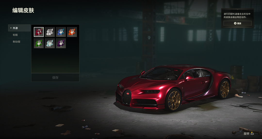装备描述:满级号布加迪绯影红双拼蓝绿马丁跑车兰博基尼SUV白战神三级恶魔ACE杜卡迪玫瑰金猪八戒M4时光SKS