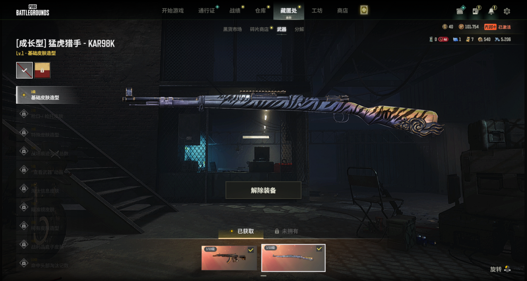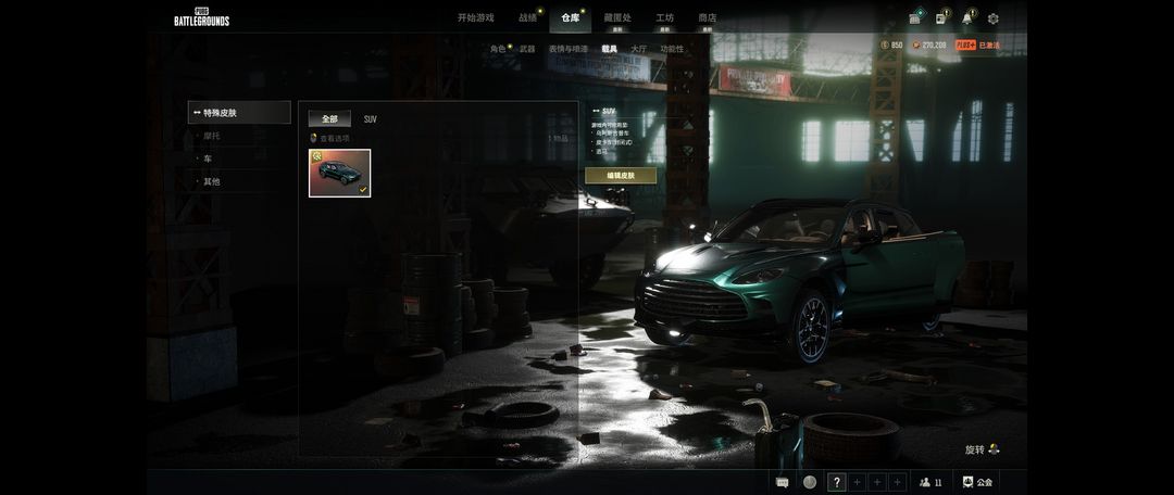 装备描述:满级号迈凯伦跑车+阿斯顿马丁SUV时光SKS猛虎98K林书豪SLR废土满级PGC冠军套