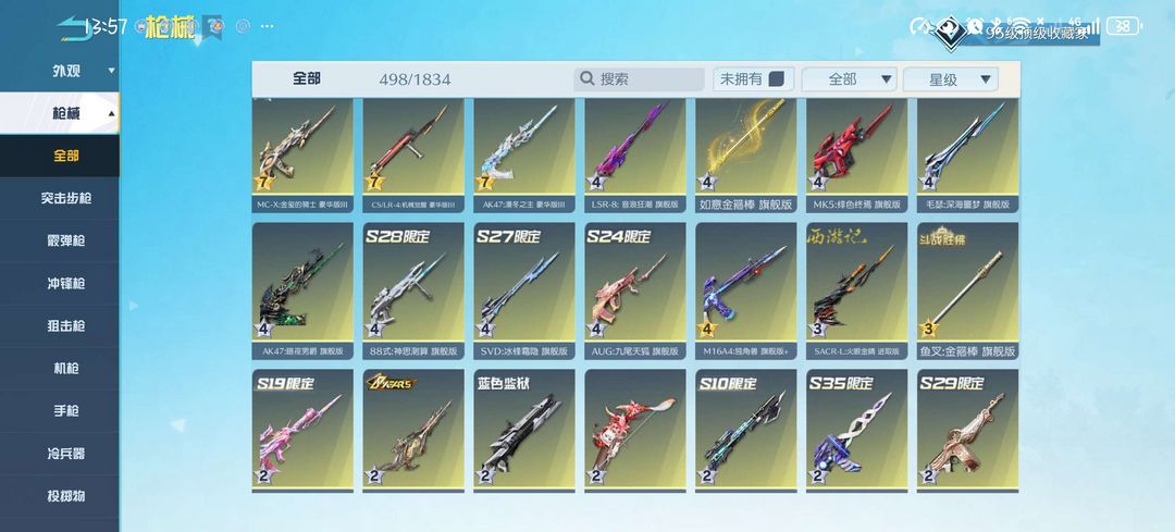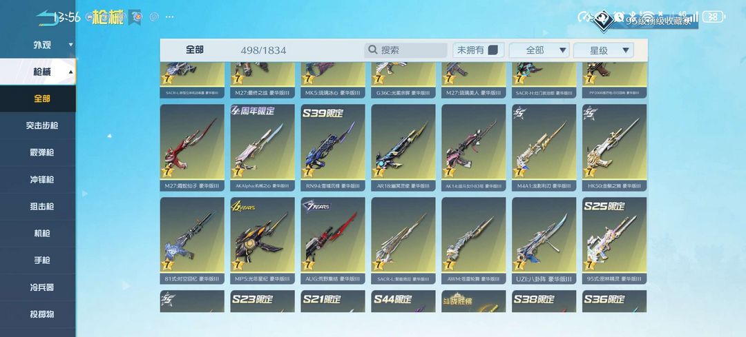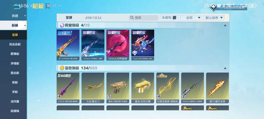 装备描述:三把殿堂枪一把至臻一辆超凡车殿堂16有黑曜色的幻色各种常用的枪都是豪华三满级套装也有三四套。