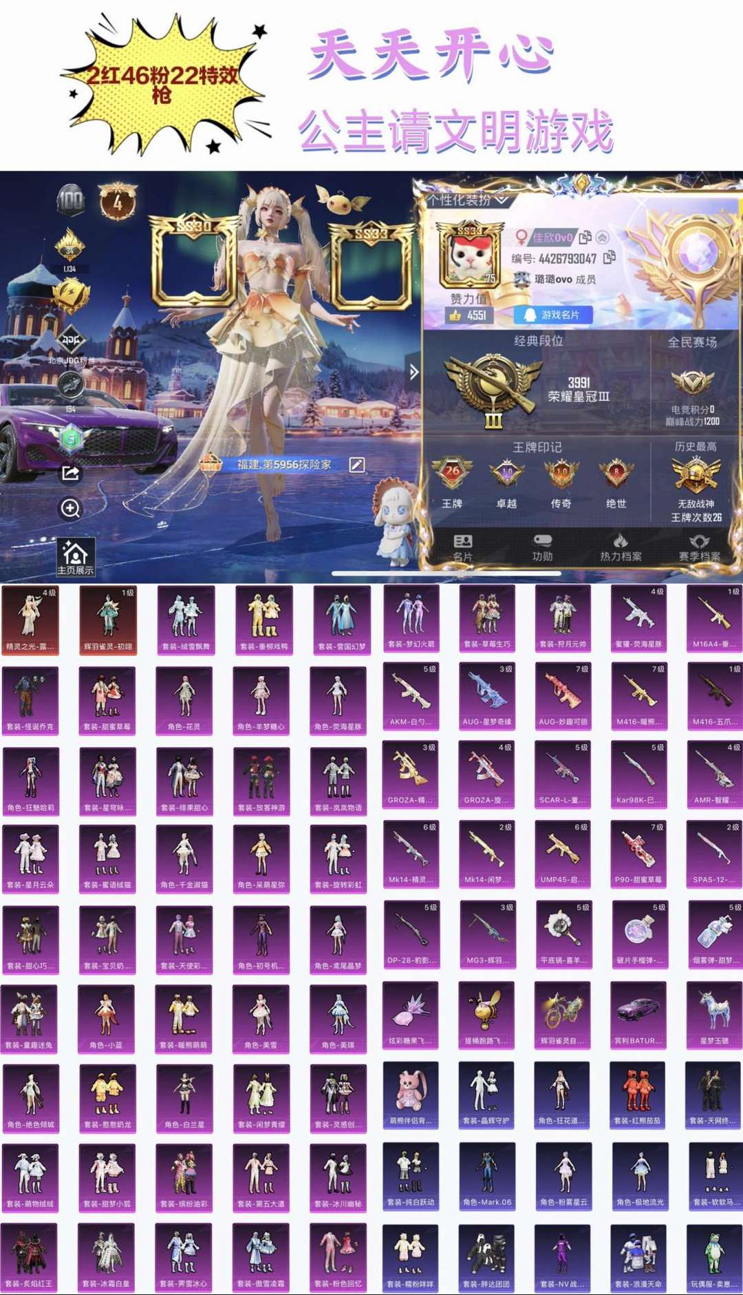 包天三折✨公主号✨2战神框✨2红46粉22特✨4级露米娜 初翊 小丑 雪国 巧克力 螳螂 猪妹 番茄