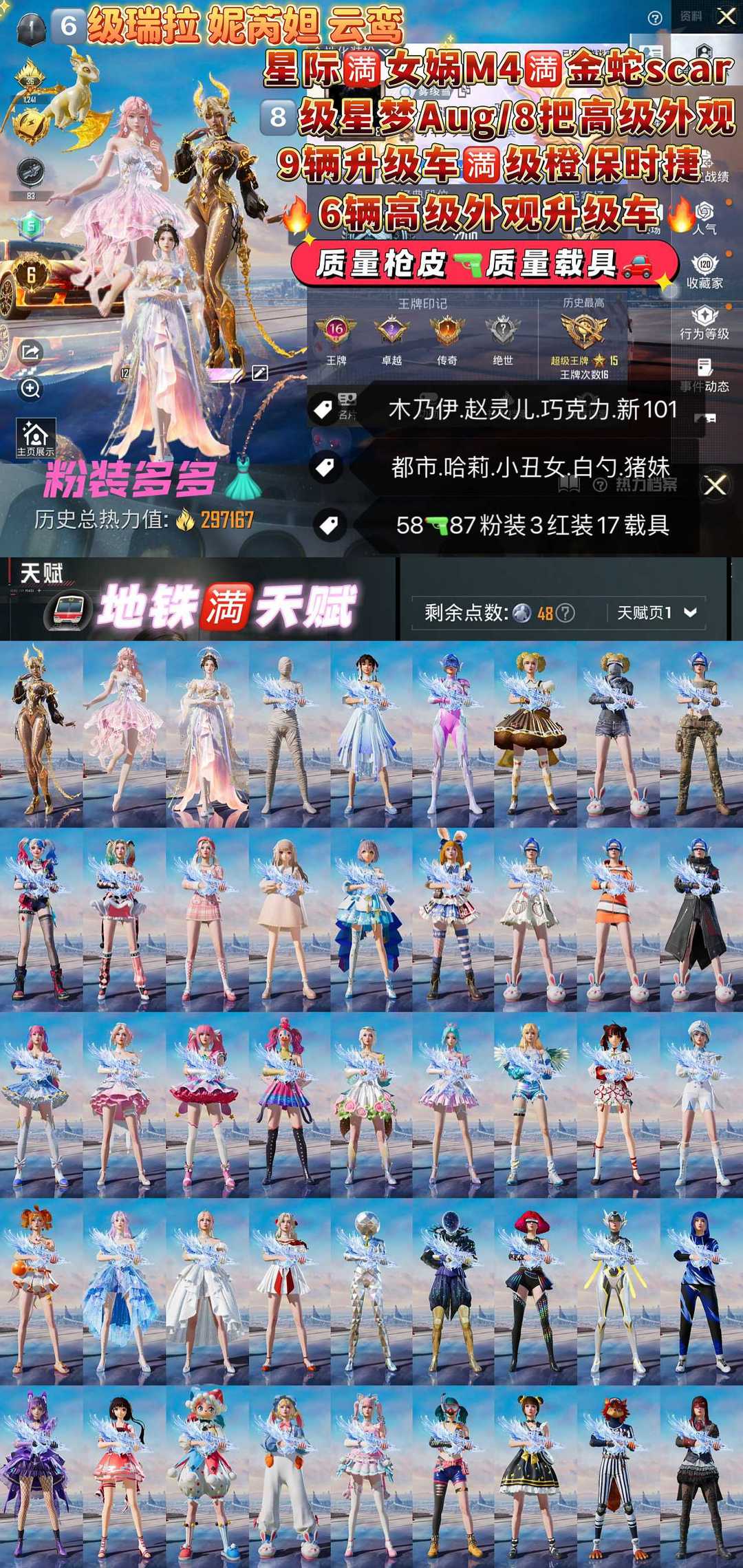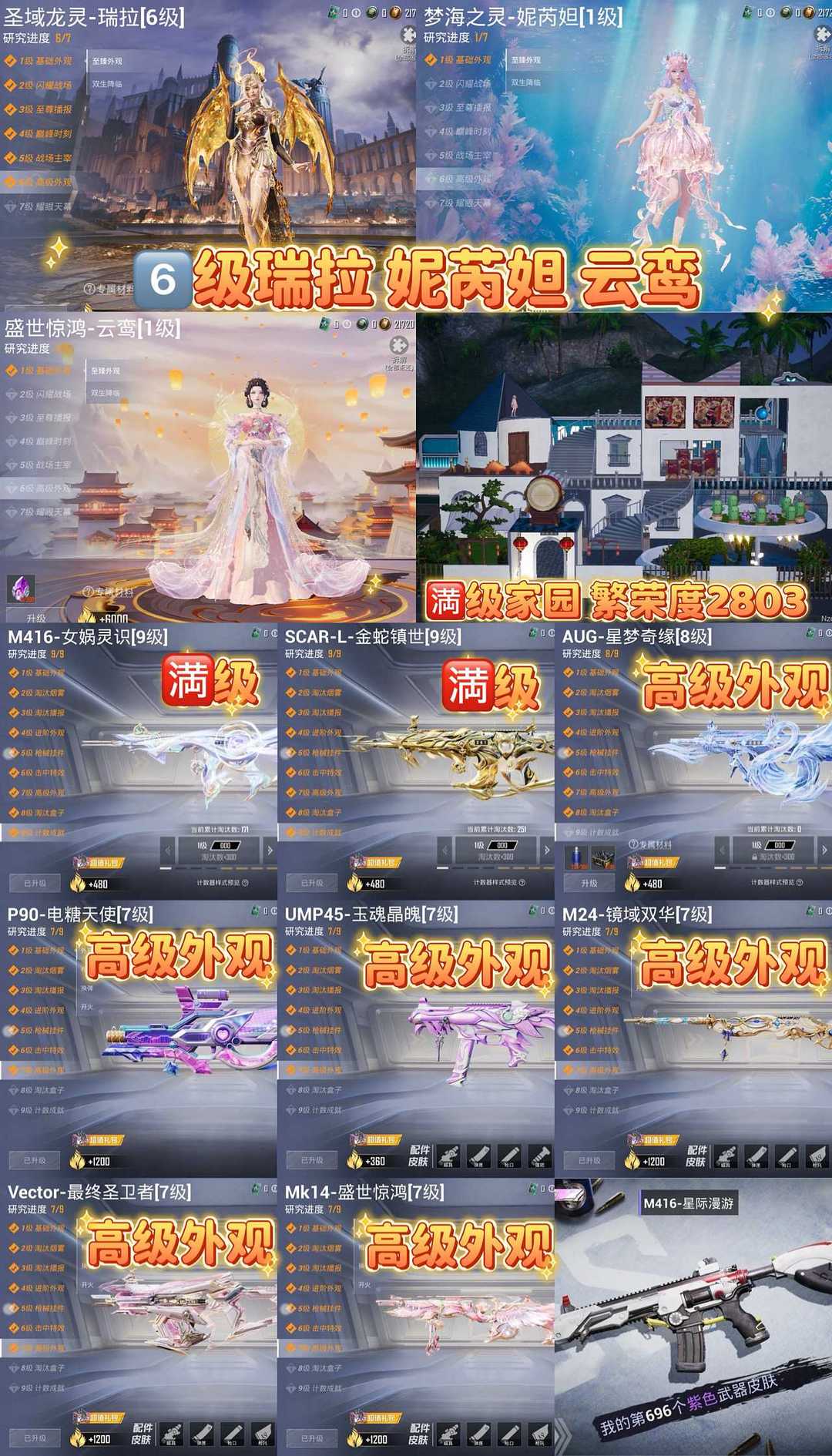 百粉素材天花板/13把9级满级女娲金蛇无垠阁星梦/满级保时捷怕美宝马塞纳/满家园6级红妮苪妲顶级大号