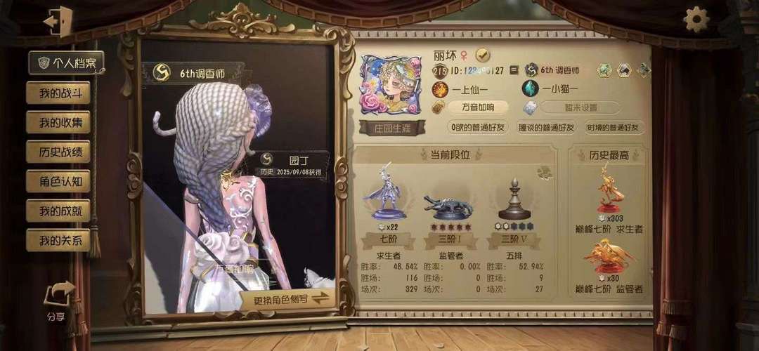 装备描述:宝宝请勿直拍禁止直拍 租D号W夹R绿G泡V泡I宝P 苹果/安卓双区可转端 现S4前锋B佣兵B先知C幻灯师人榜40名国服S牌+双B牌+C牌4个在榜现牌 ︎ 历史S小女孩S勘探S佣兵S前锋S先知S古董S气象S医生S空军S幻灯师S厂长A击球A机械师历史双巅峰求生193星【人榜在榜S牌13个历史标 历史11S】( 175金皮百金大情号 满氪带山庄共享 ) 现A11调香A43杂技A21守墓现榜3个A牌 历史S园丁S杂技S囚徒S守墓A佣兵A记者A厂长B杰克历史双巅峰求生301星【人榜在榜双S牌8个历史标历史4S】( 百金情号 带山庄共享 ) 现C牌守夜人历史S杂技S厂长A守夜A杰克历史双巅峰监管125星4历史标 ( 百金情号 带山庄共享 ) 现B牌厂长历史标S古董S拉拉A守夜A愚人金B牌雕刻 历史人屠双百星5历史标 ( 百金情号 带山庄共享 ) 个人号出租欢迎有礼貌素质好的宝宝租号