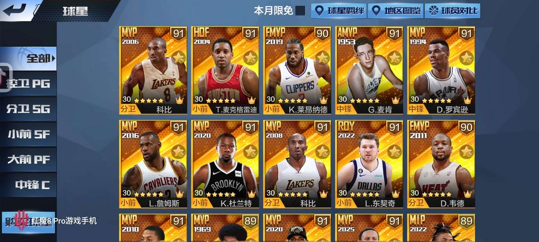 天选新库里,屠龙二专属,东契奇,曼巴科,麦迪,网杜,罗斯,冠军詹,专属潮服特效。50来个点券