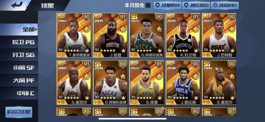 可匹配,可排位,天选哈登,天选奥尼尔,天选库里,天选东契奇,天选杜兰特