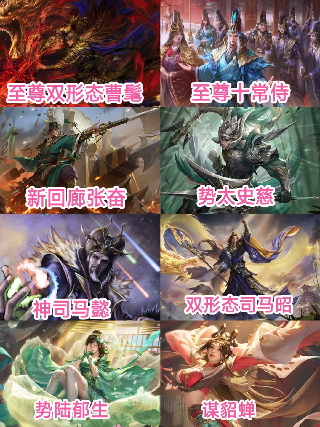 【有卡】大将军☀至尊双形态曹髦☀至尊十常侍☀新回廊张奋☀势太史慈势陆郁生☀司马昭神司马懿谋貂蝉谋关羽