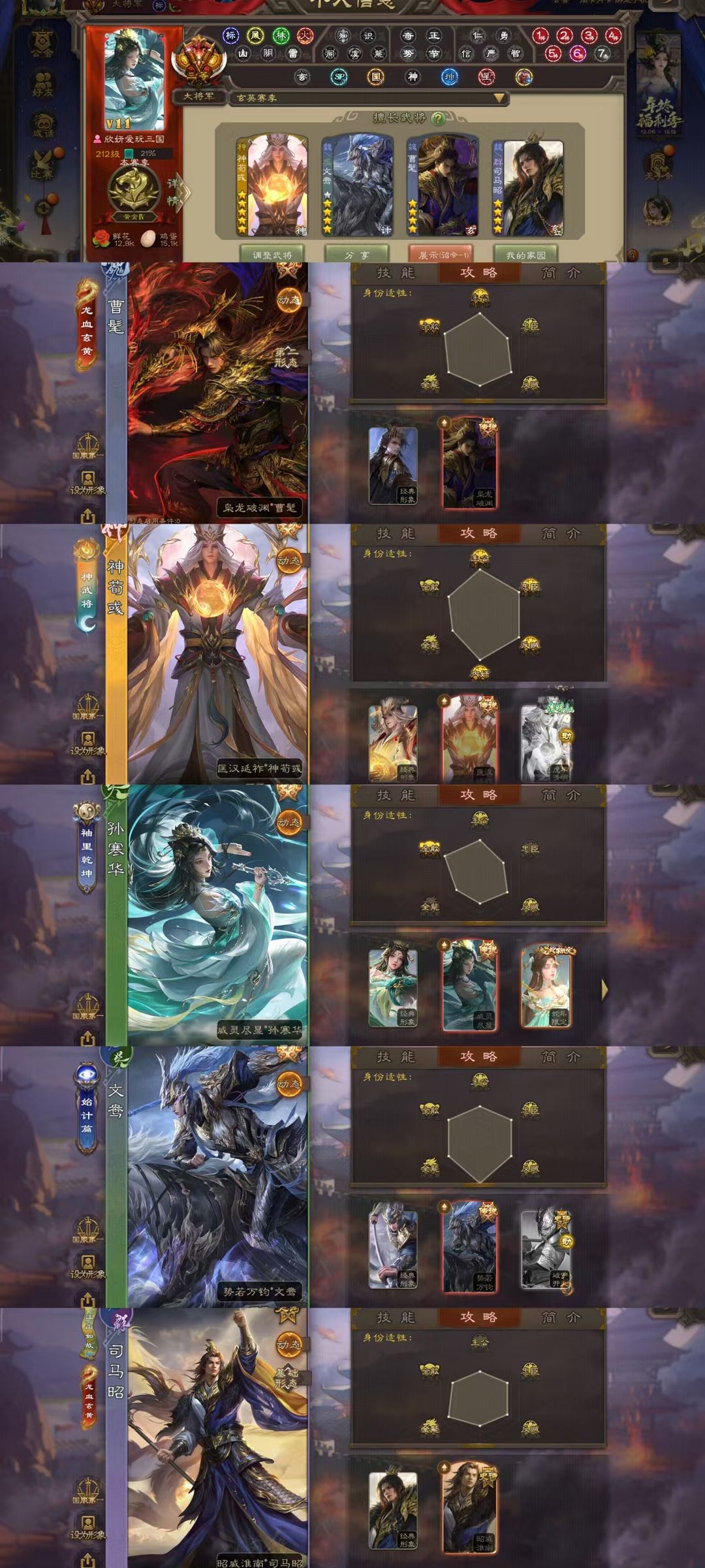 大将军☀至尊双形态曹髦☀回廊神荀彧☀奇门孙寒华☀双形态司马昭文鸯☀以身证道谋关羽☀鲍信郭女王