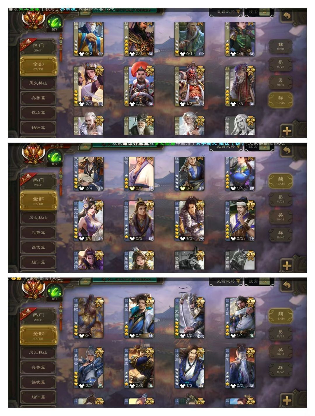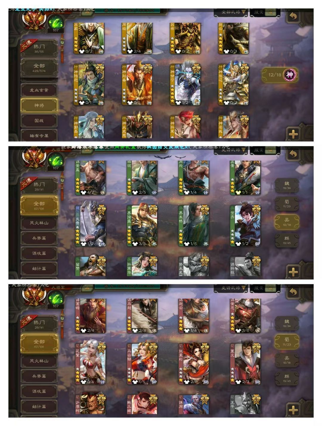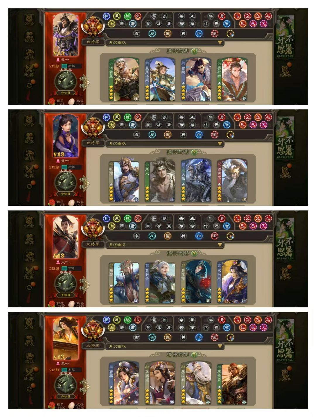 限制: 撤单率<19%才可租用此帐号装备描述:官方二等大将军,无卡,VIP13! 30四星玉龙:回廊动刘焉,回廊动神荀彧,回廊动神孙策,回廊动文鸯,回廊动谋黄忠,动神郭嘉动神甘宁动谋黄盖动鲍三娘动许攸动留赞动星周不疑动界李儒动司马师动曹婴动张琪瑛动界左慈,金杨彪金界钟会金界徐盛,孙寒华杜预周处神赵云神太史慈马钧! 68史诗武将:动诸葛瞻,金郑玄,王元姬南华老仙庞德公神陆逊鲍信! 111排位武将97国战武将,54动皮125金皮190国战皮肤!.。