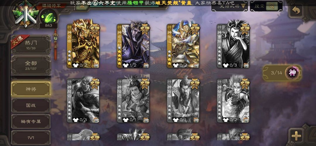 装备描述:动神司马懿 动文鸯 曹髦 谋曹丕 司马昭 曹婴 戏志才 界李儒 关索 神吕布 星黄忠 王粲 张让 神张辽