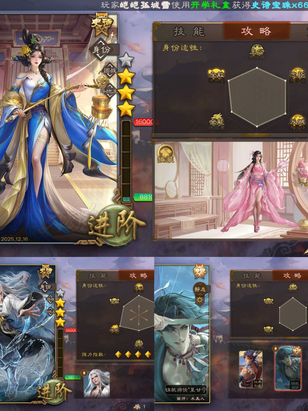 装备描述:新武将崔芙一轮18牌/ 最强农民势于吉/神太史慈/大宝/收藏