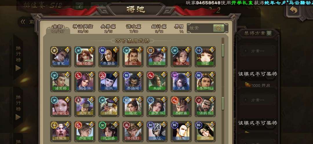 101排位武将★28史诗枭龙破渊曹髦奇门孙寒华裴秀界徐盛双形态界钟会回廊曹髦双形态曹髦