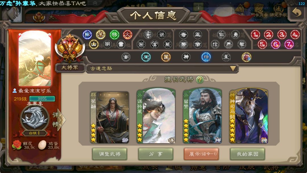 装备描述:禁止逃跑,严查,发现永久垃黑,恶意毁号,我找经理都查的到,会用法律手段解决。最后祝各位玩的开心 50ss96排位V10,大将军,动谋孙策 回廊谋孙策 至臻谋孙策 跑男35动皮,,武将:界徐盛,神司马懿(动),杜预,神赵云(动),马钧,星黄忠,骆统,左慈,杨修,陈琳,张星彩,程昱,留赞,孙皓,兀突骨,神吕布,沮授,关索,赵襄,贺齐,麹义,戏志才,张让,嵇康,董允,动戏志才 马云騄,王平,诸葛瞻,郝昭,神张辽,审配,界钟会,苏飞,界朱然,公孙康,吴景,王凌,周处,谯周,花鬘,谋赵云,谋孙策,曹纯,祢衡,陶谦,刘晔,界黄忠,庞德公,SP关羽,SP曹仁,SP蔡文姬,乐进,曹昂,诸葛诞,朱灵,文聘,SP姜维,张春华,钟会,曹冲,郭淮,满宠,界王异,界曹操,界司马懿,界夏侯惇,界张辽,界许褚,界郭嘉,李典,曹真,韩浩史涣,陈群,曹叡,曹休,钟繇,司马朗,王基,李通,郭皇后,孙资刘放,辛宪英,界甄姬,吕虔,鲁芝,蒯越蒯良,界典韦,界荀彧,界徐晃,杜畿,界曹丕,毌丘俭,界邓艾,张恭,界曹植,界曹彰,界满宠,界郭淮,卞夫人,华歆,袁涣,王双,崔琰,阮慧,谋徐晃,谋于禁,胡班,谋夏侯渊,牛金,界夏侯渊,