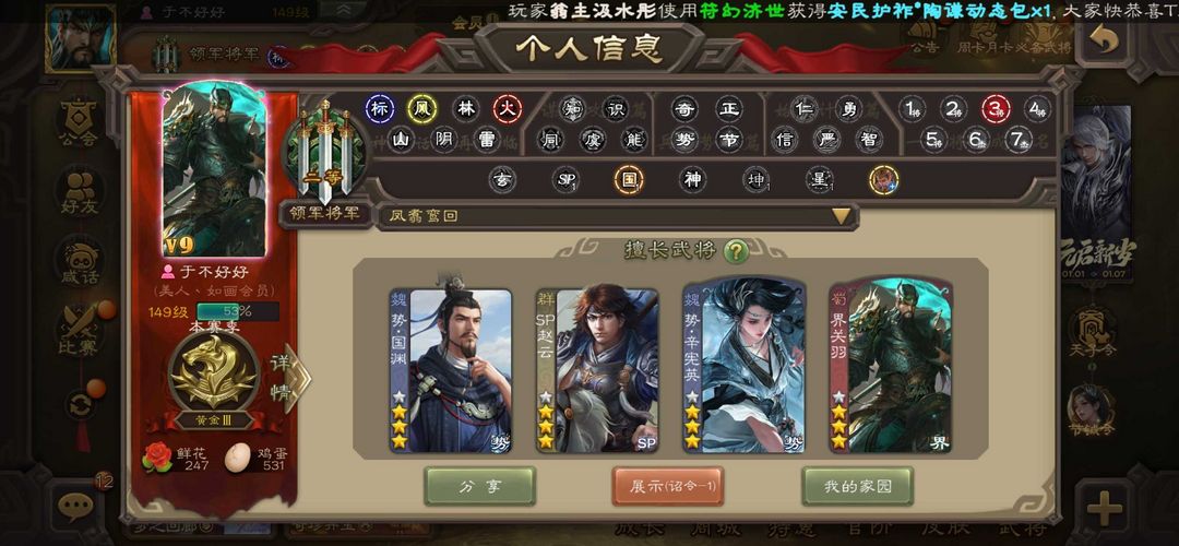 装备描述:界关羽至尊皮圣垂千古/新武将势国渊果园天尊/势辛宪英带动/白马/许攸/收藏