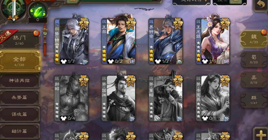限制: 撤单率<50%才可租用此帐号装备描述:低官阶有卡动王元姬势钟会界钟会王粲