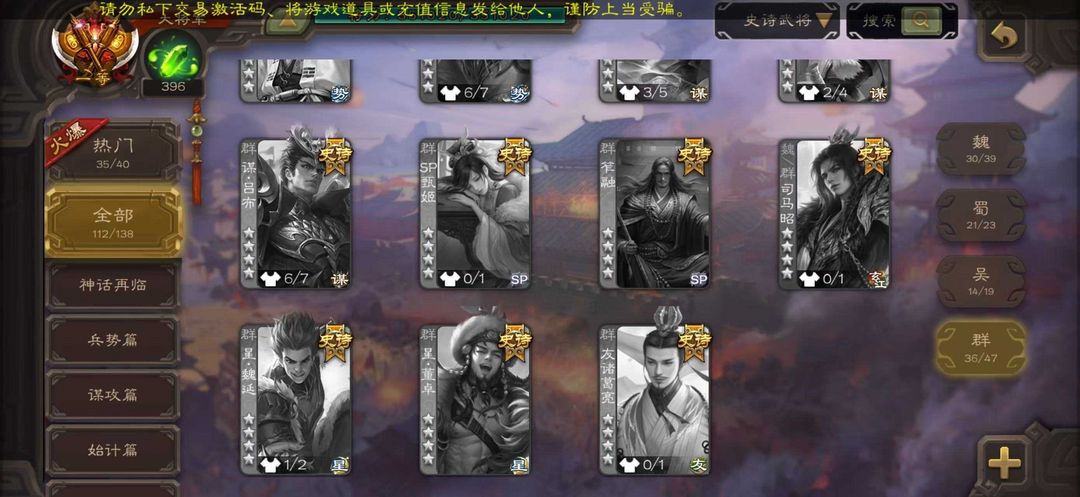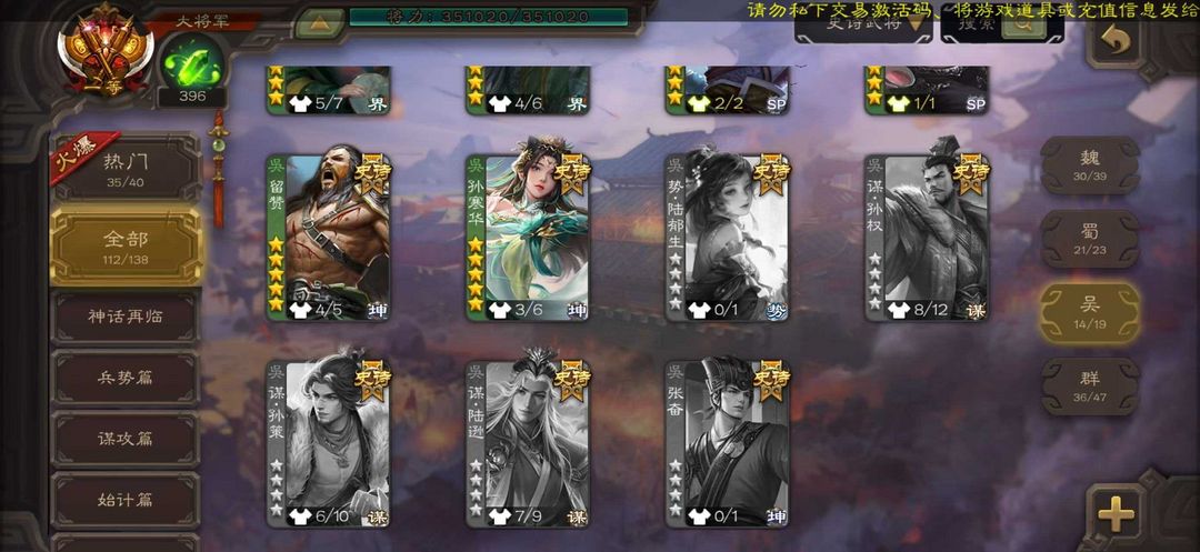 V26,112史诗,280动皮,曹髦、神曹操、神荀彧、势太史慈,三卡过万 一等大将军全服排行600+