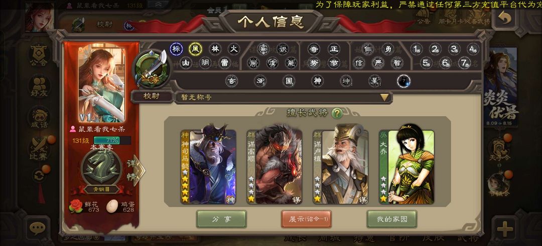 装备描述:有卡,势魏延禁止利用账号进行开挂、使用辅助违规软件诈骗等违规操作。喜欢本账号请点 ☆收藏☆ 方便下次租用,谢谢光临惠顾!