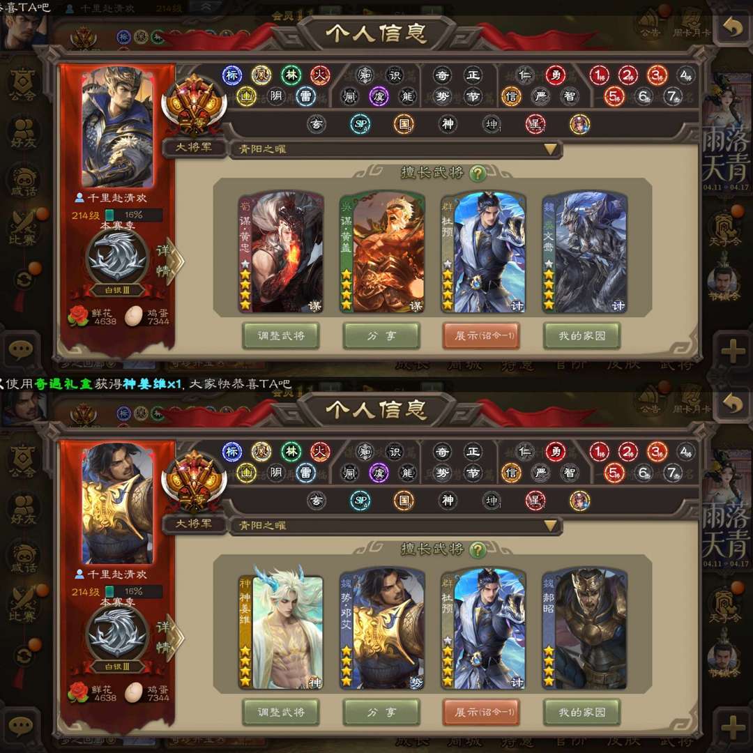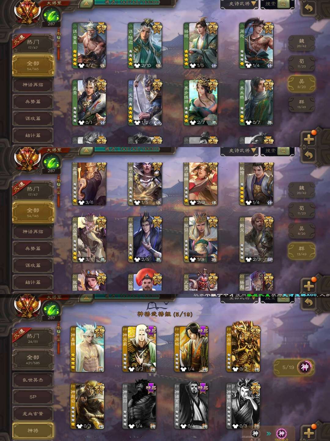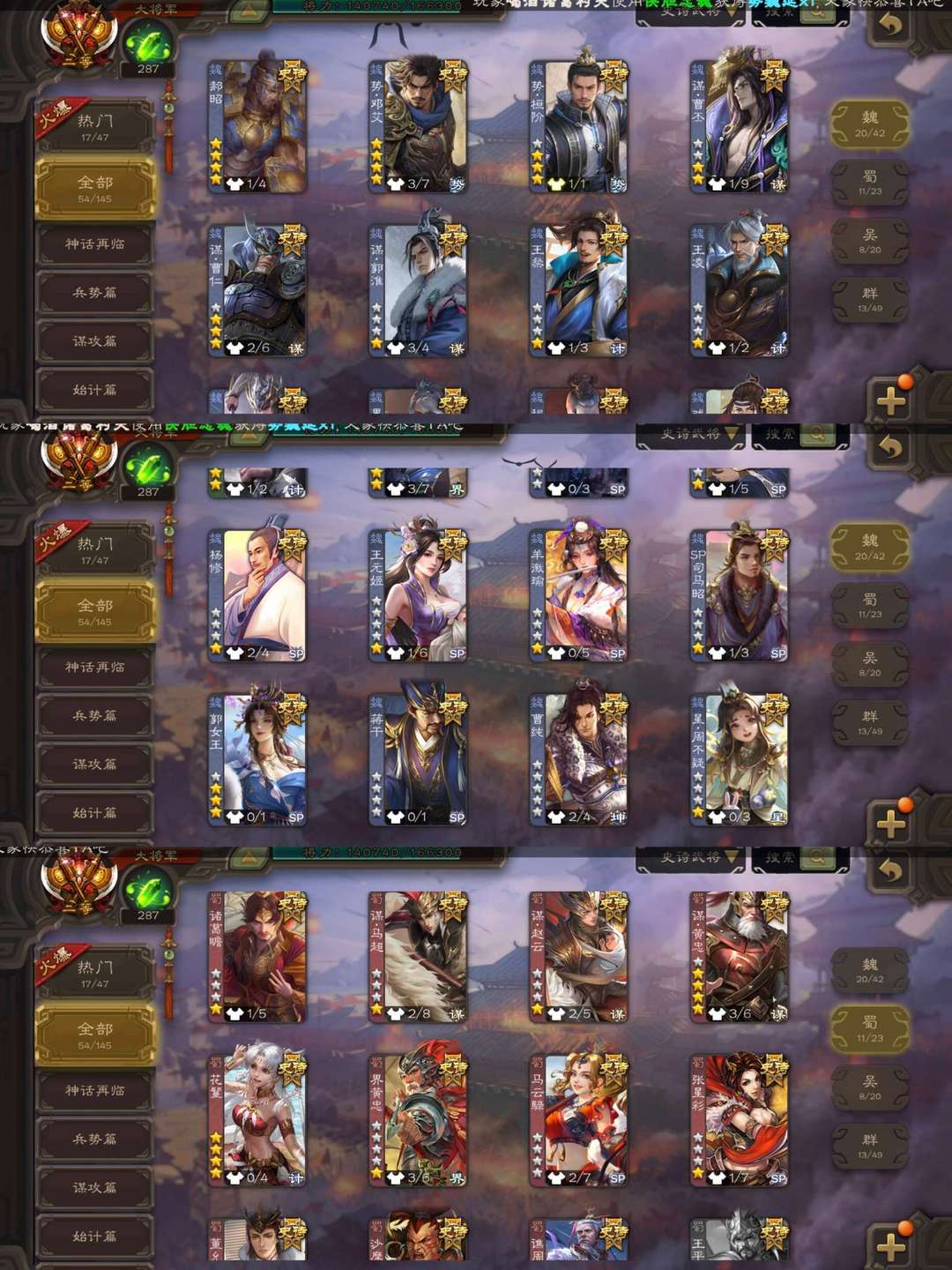 有卡♥玉龙神姜维♥玉龙新回廊势邓艾♥回廊谋黄忠谋黄盖♥势桓阶谋貂蝉♥二等大将军