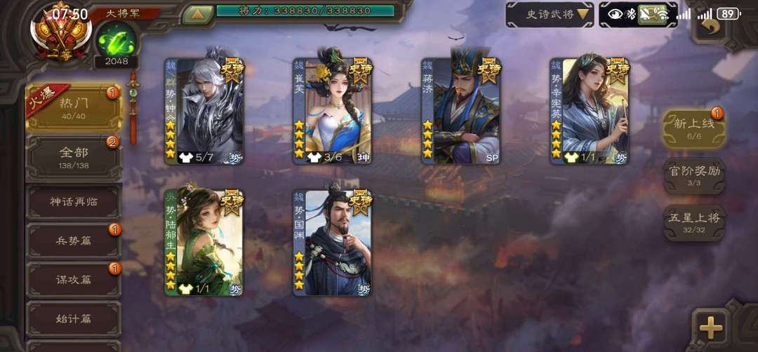 【有卡】全扩一等大将军138史诗V26 势钟会崔芙双形态曹髦蒋济势国渊窄融213动皮
