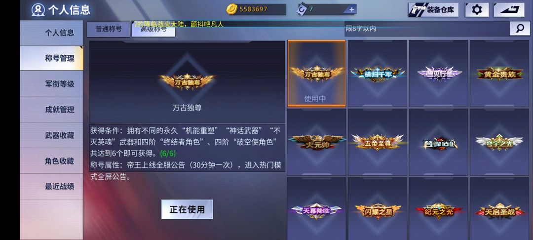 装备描述:喜欢本账号请点 ☆收藏☆ 方便下次租用,谢谢光临惠顾! 毁号行为涉及毁坏虚拟财产罪及计算机安全罪,请文明游戏素质游戏,让我们共建美好租号平台!