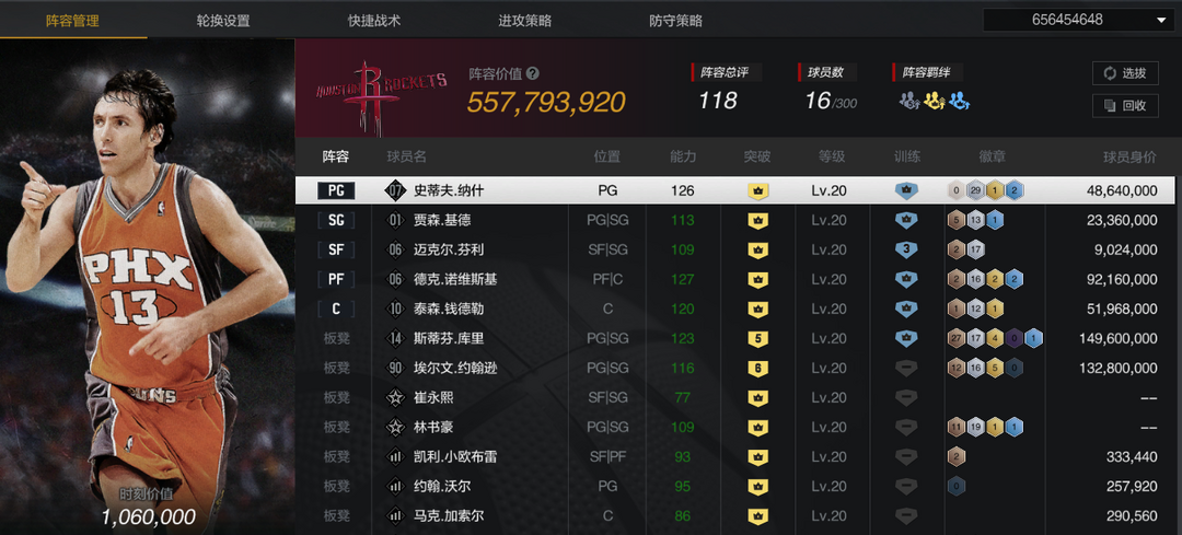 【5陈列室库里】【10时刻司机/纳什】【10钱德勒】【6魔术师】【传奇控卫】【百步穿杨】