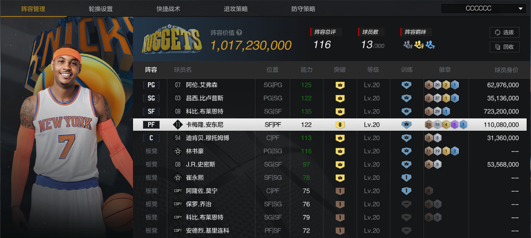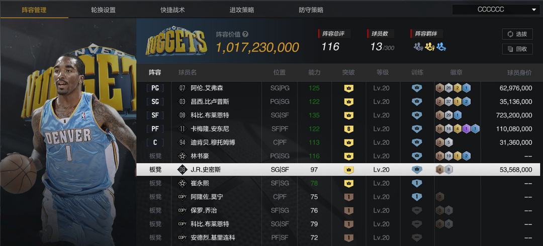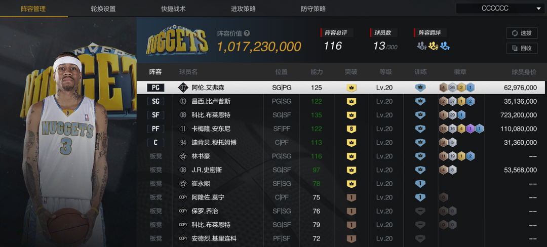 限制: 撤单率<50%才可租用此帐号装备描述:【巅峰新掘金】【10突科比】【6突纽约瓜】【10艾弗森/JR/时刻比卢/穆大叔/书豪/唐斯】