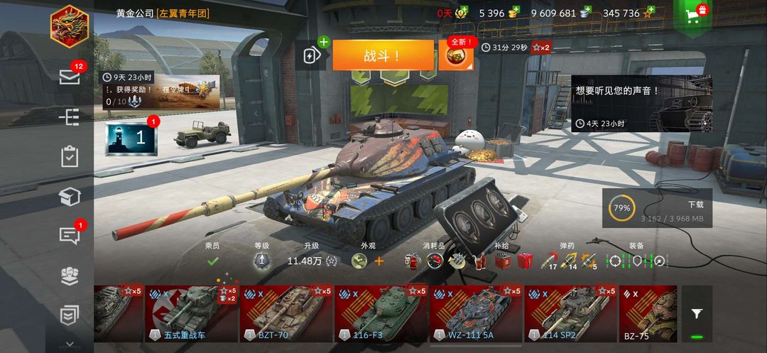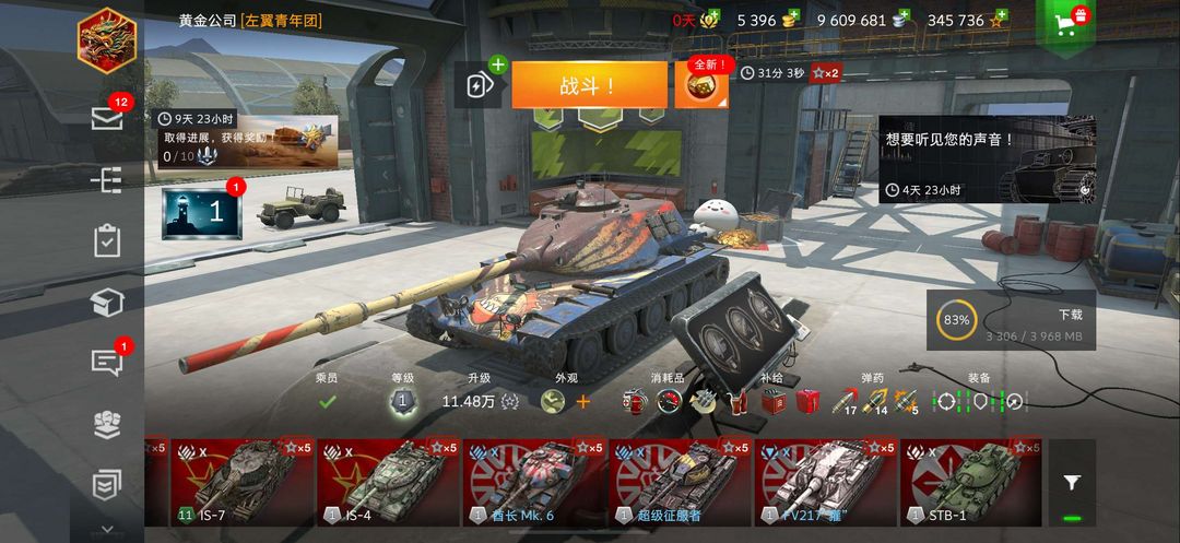 ios官服,菲利斯116F3,bzt70,五式重战,45t,超征, FV217,大法虎猛男必租
