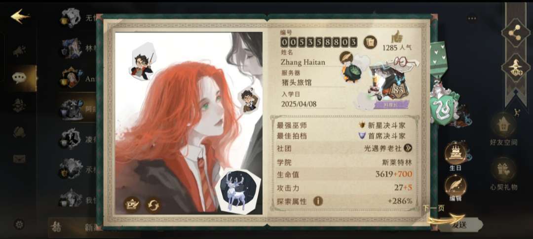 装备描述:哈利波特:魔法觉醒 账号出售 ✨ 猪头旅馆官服·斯莱特林首席决斗家号 ✨ ▫️ 魔法书等级:[请补充你的数字等级] ▫️ 决斗段位:首席决斗家 ▫️ 时装亮点:金色品质「妙手生香的烹饪艺术家」全套,搭配多套金/紫品质时装(学院风西装、暗夜庄园等),穿搭自由切换。 ▫️ 外观细节:含金色品质「柔枝茂叶」发型、「玩偶之心」瞳孔、「纯金飞羽」眼镜等多款精美妆容配饰,细节拉满。 ▫️ 其他亮点:典藏魔杖「哲思之冕」、稀有聊天框「沼泽耳鸮」,社团「光遇养老社」,称号「料理长」,1285人气值。 ▫️ 账号优势:开服老号,养成度高,资源齐全,可直接上手体验高阶玩法与外观收集乐趣。[(嗯,对,祝老师们玩的愉快,嗯,对,有些说的有点不符,我是豆包生成的嗯,对,我太懒了,我发他图片请见谅,图片上都有的,可以看图片嗯,对,祝老师玩的开心
